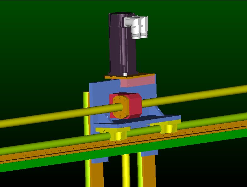 Současný stav viz obrázek, vodorovně 2 osy na podepřených tyčích a jeklu, kuličkový šroub. Svislá osa na podepřených tyčích bez podpěry+kuličkový šroub. třetí osa pneumatický válec+ vedení ve dvou lineárních ložiscích. Už při středních rychlostech se mi kuličkové šrouby rozkmitají a od nich i osy.