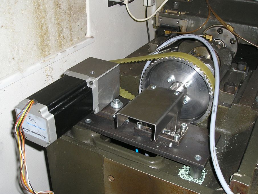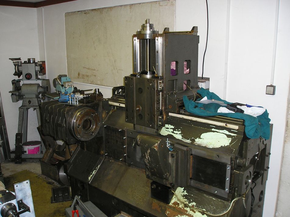 Na vřetenu je univerzalka 160 púvodně z hydraulického upínání. Táhlo je duté a na konci trapéz 35*3. Matice je chycená mezi talířové pružiny které určují sílu upínání. Při upinání nebo povolování je vřeteno zabržděné spojka u převodovky sepne a přes řemeny otáčí maticí. Po stlačení pružin koncák spojku a brzdu rozepne.