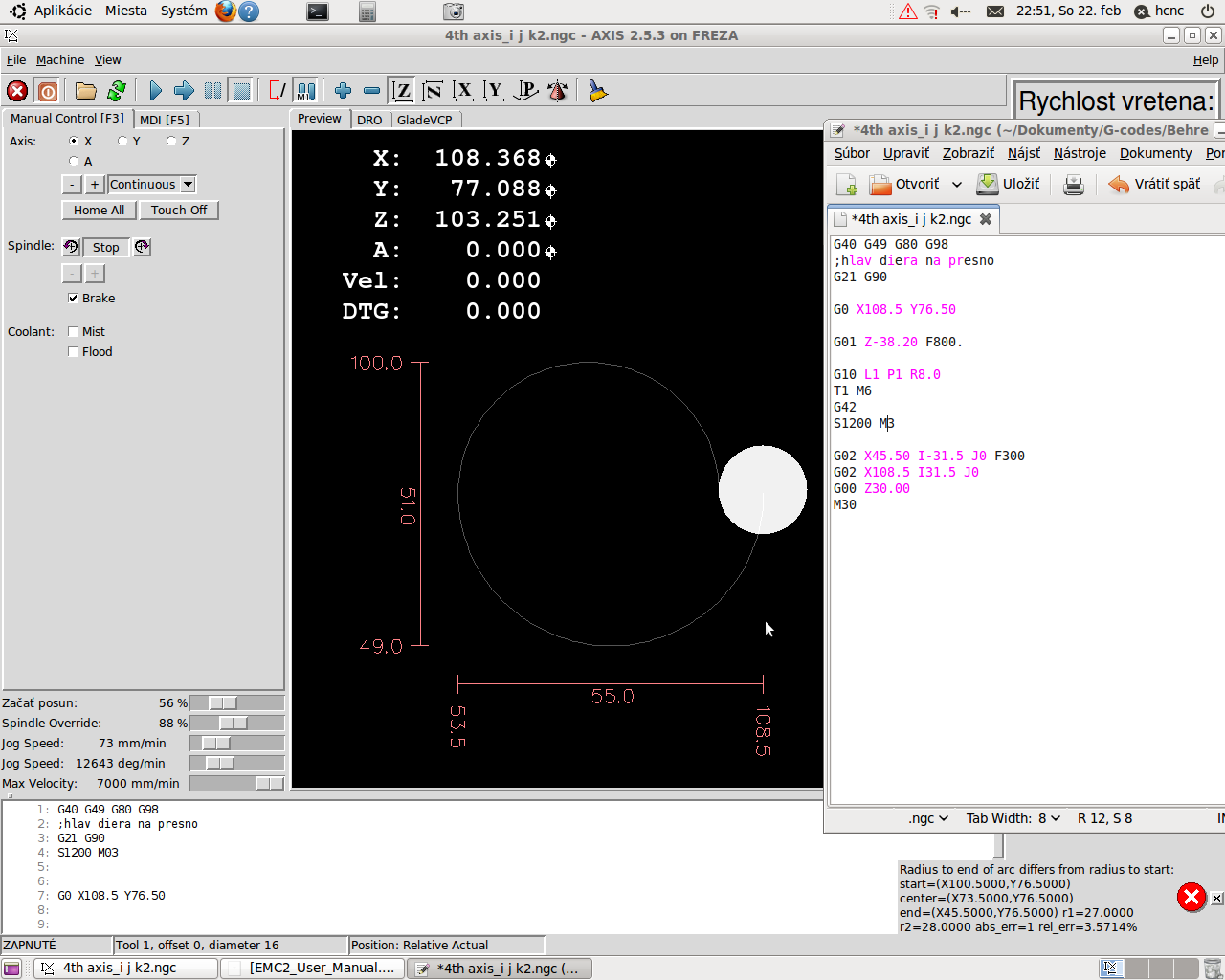 Zacatek i konec drahy s korekci je v LINUXCNC blbe spocitany , ta teorie je inzenyrska odysea. Je videt ze v praxi ti hosi nikdy nic moc nedelali.