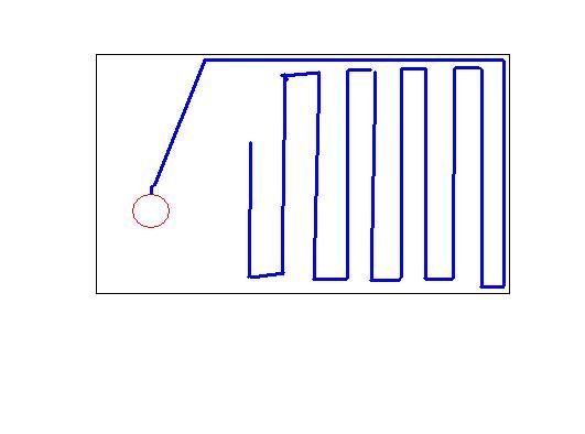 myslel jsem si žebych ho nechal aby najel na zed srovnal se podel ní a až by najel na další překážku -(zed) tak by zahnul o 90°a při daší detkci by se posunul o záběr vedle , jen mu pak ještě říct jak se zachovat v případě detekce překážky která není zed , což by nebyl problém vyhodnotiz z těch třech čidel.