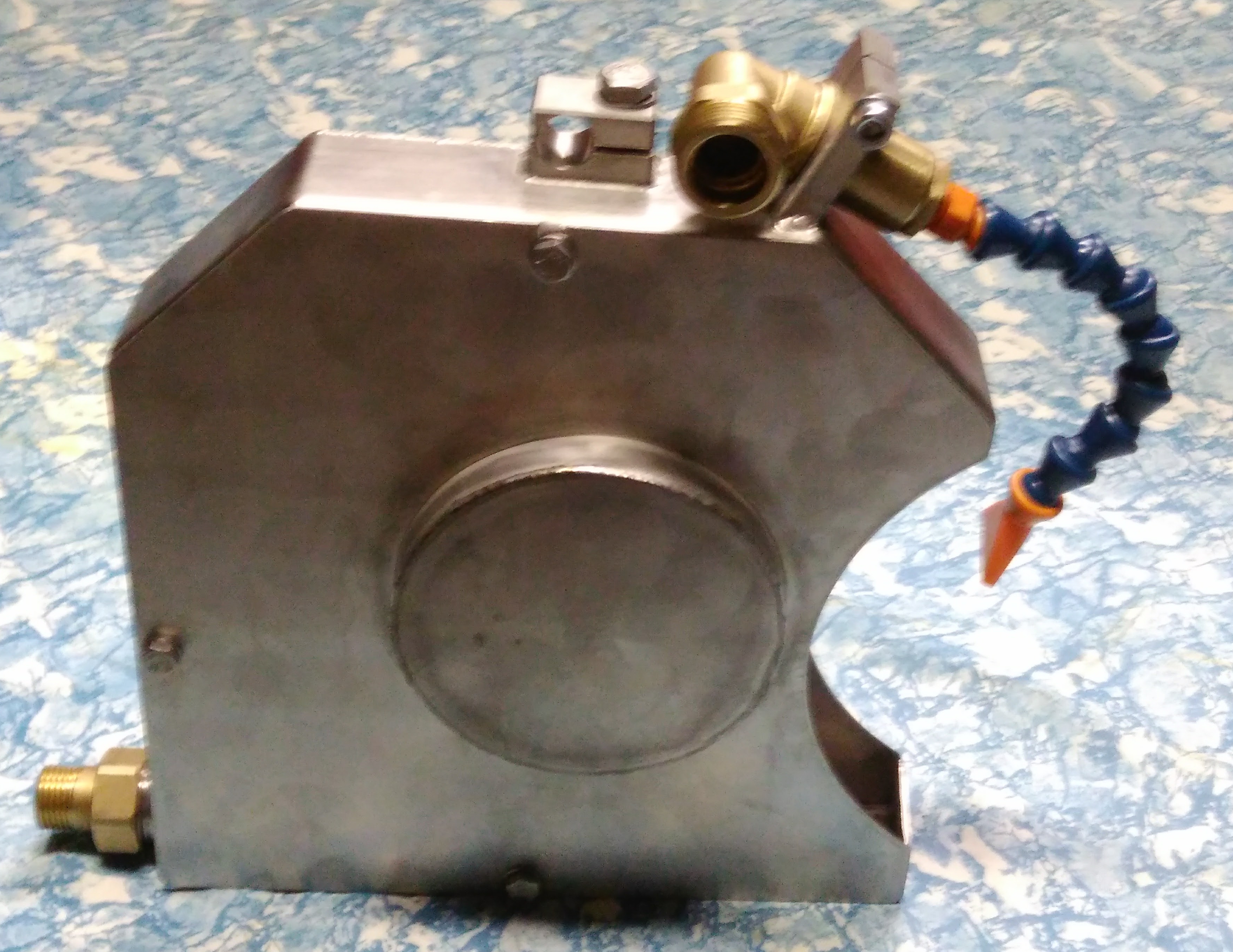 tak zase sem pokročil, chlazení na nástrojovou brusku bn 102, podařilo se mě udělat kryt na kotouč proti rozstřiku kapaliny, je to z nerezi, zároveň je na krytu držák hadice vedoucí chladící emulzi, spodek je vyspádovaný, aby kapalina tekla zpět k čerpadlu...pomalu se blíží finále sem dost zvědavý.