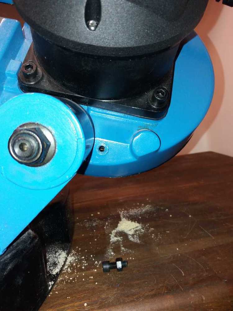 V čem je ta mizerně? Od výroby nebylo nic pod uhlem. Svěrák je nakloněný , takže kolmý rez se mi povedlo az po vypodlozeni sveraku. Pas šel krivo, protože bys špatně namontovány držák pasu.
