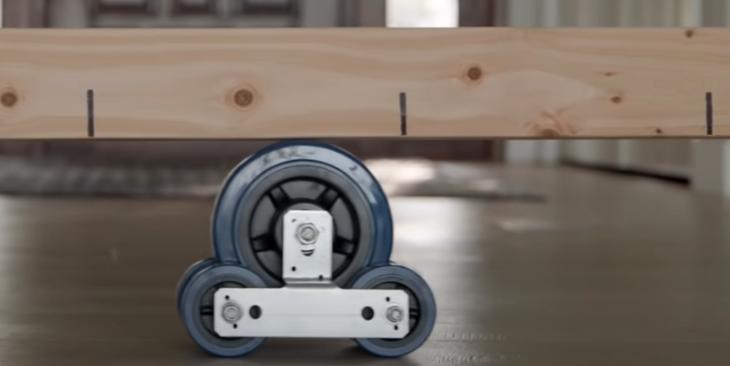 zde vozíček "brzdí" svou nepatrnou hmotností ten trám a tu energii převádí na dopředný pohyb