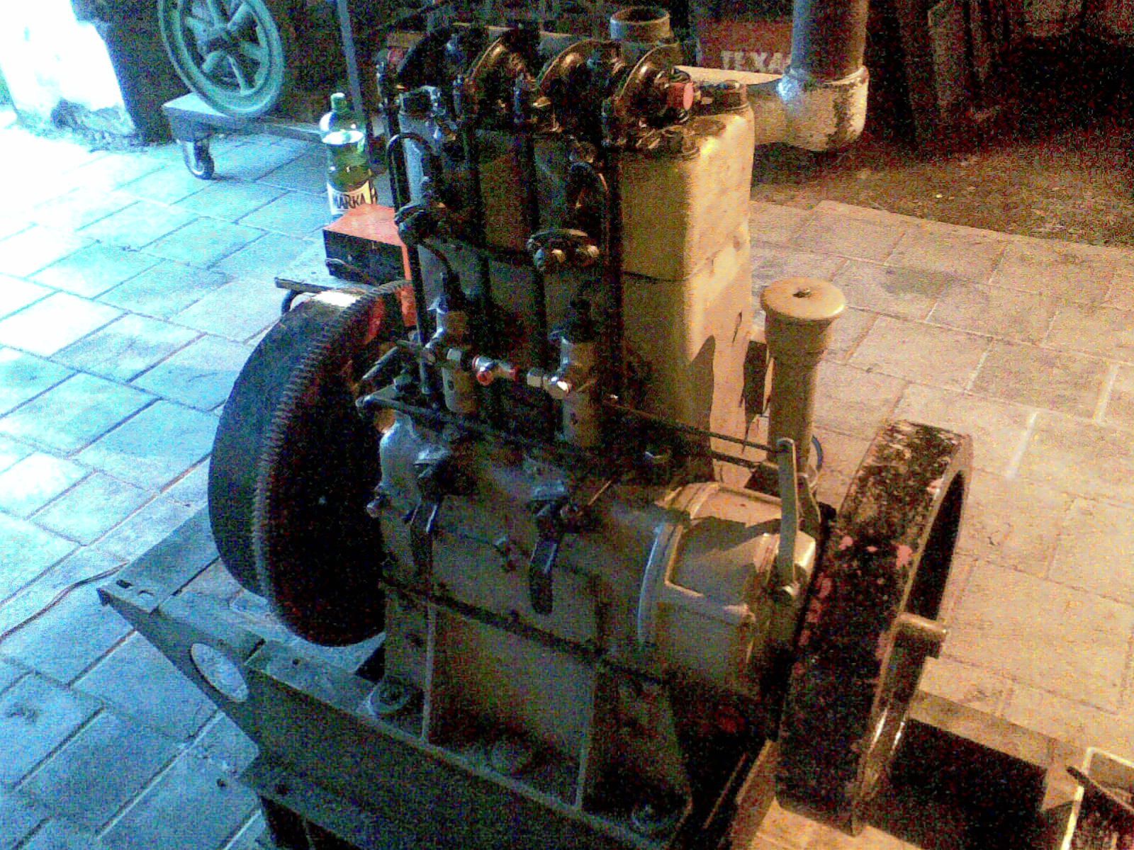Bohužel, generátor už údajně neměl. Prý to měli jen namašlené jako turistickou atrakci. Jinak to vůbec nefungovalo. Motor evidentně několik let neběžel. Údajně to prý prodávají protože to bylo slabé a teď si z toho vyber. Zato ten někdo kdo jej repasoval to bral sakra poctivě. Až se tomu sám divím. Všechny spoje jsou tmel-papír-tmel. Kyž jsem se zeptal proč se nehýbe páka regulátoru, tak mi bylo sděleno že nikdo neví na co to je a nikdy se to nepoužívalo. Na setrvácích jsou matky na klíč vel. 70mm. Matice umělci dotahovali a posléze povolovali kladivem a sekáčem. Když jsem se zeptal proc jsou ty matky tak zbídačené, bylo mi vysvtleno že jim prý klíčem povolit nešly. Říkám: nešly, nebo jste tak veliký klíč prostě neměli? Pokrčení rameny je výmluvná odpověď.