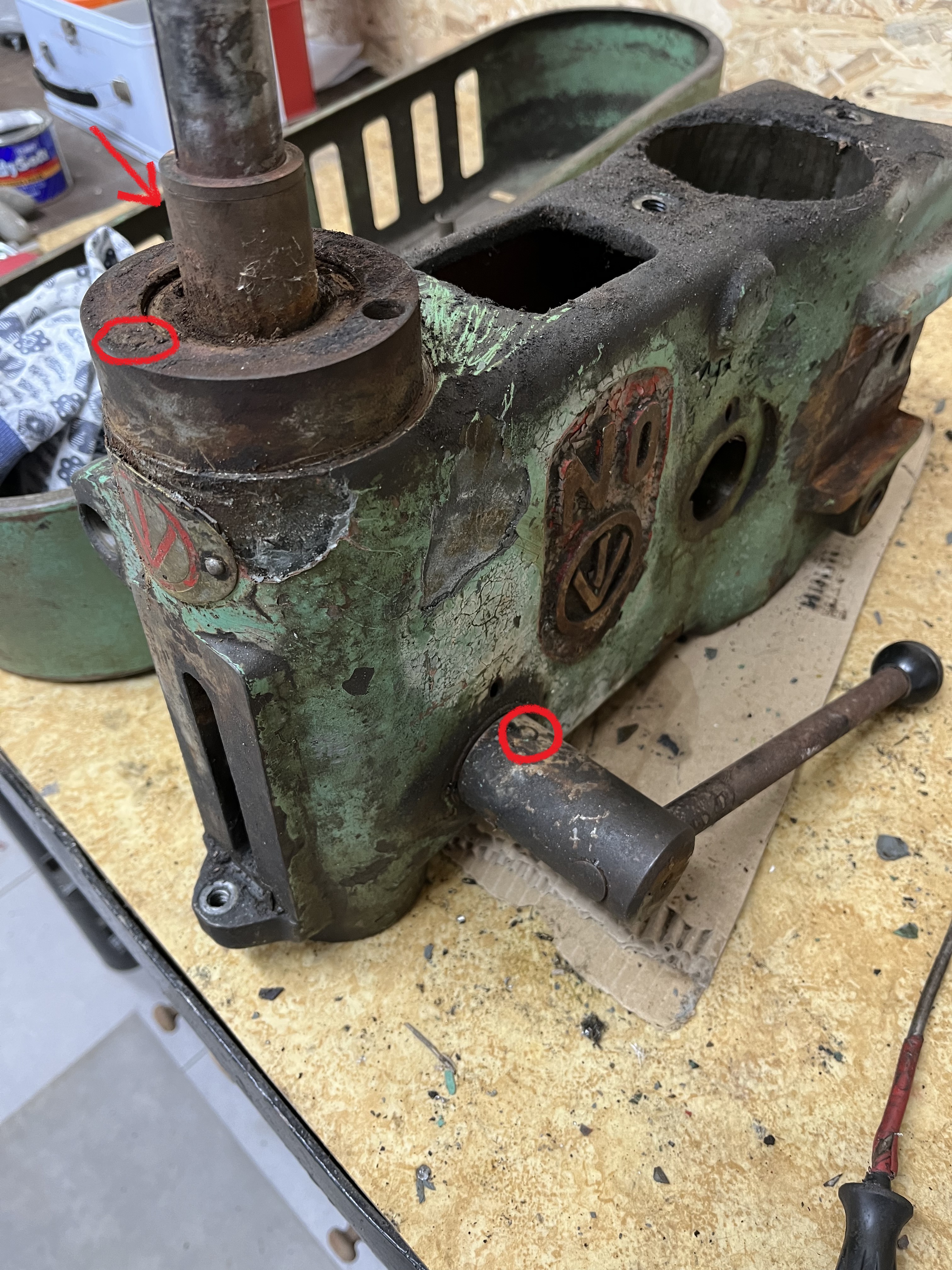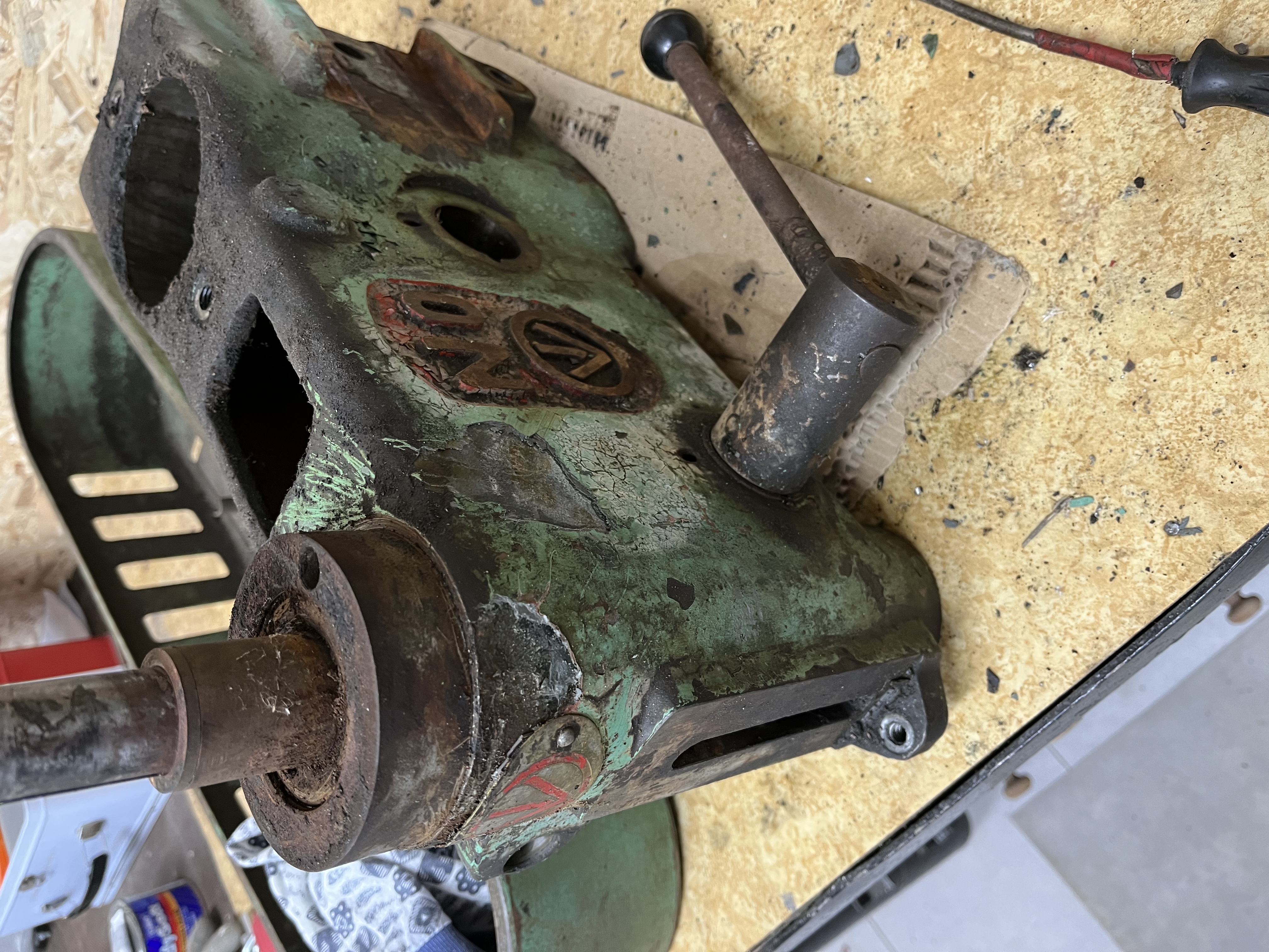 Čep je venku, ale nic se neděje… je tam poslední červík, ale ten nejde ven přes hřídel a nikde jsem nic jiného nenašel, zkusil jsem klepnout, ale taky nic a mlátit se mi do toho nechce, když nevím kam :-D