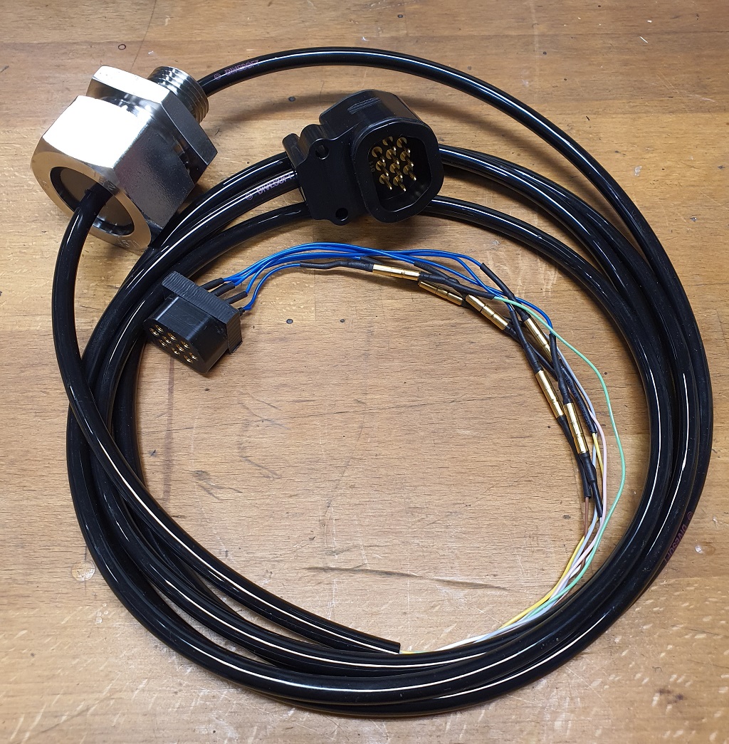To jsou jen volné piny z konektoru, ta sestava se nedá namontovat vcelku, bude se muset rozpojit a takhle to jde protáhnout tou průchodkou. Průchodka sama je do 30 barů, proto je tak humpolácká :-)