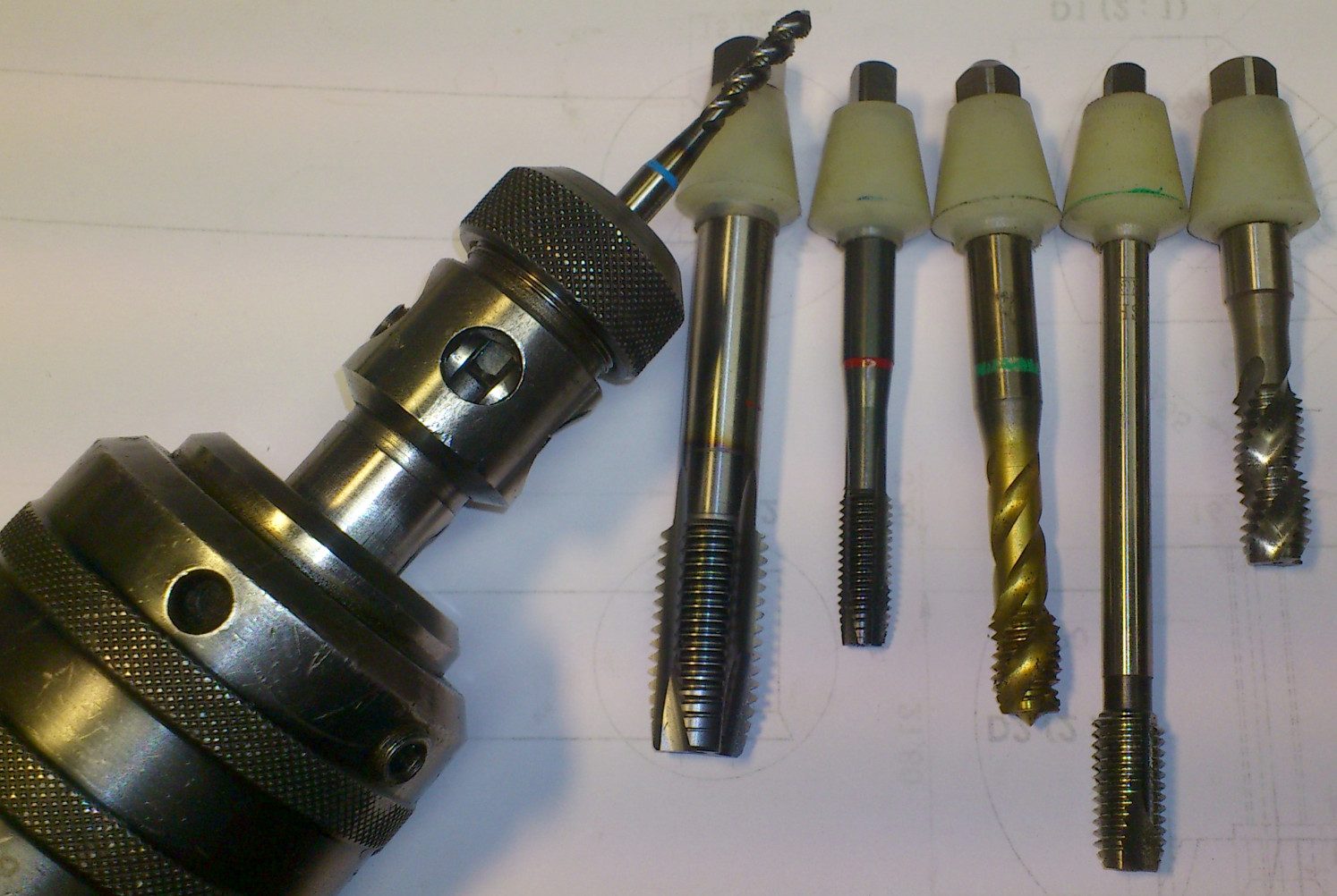 ps. zjistil jsem, že kleštiny vůbec nemusí být dělené - otvory jsem udělal natěsno, takže závitníky do nich jdou zasunout velmi ztuha (centrování je tak zajištěno a protočení zabraňuje upnutí za 4hr )