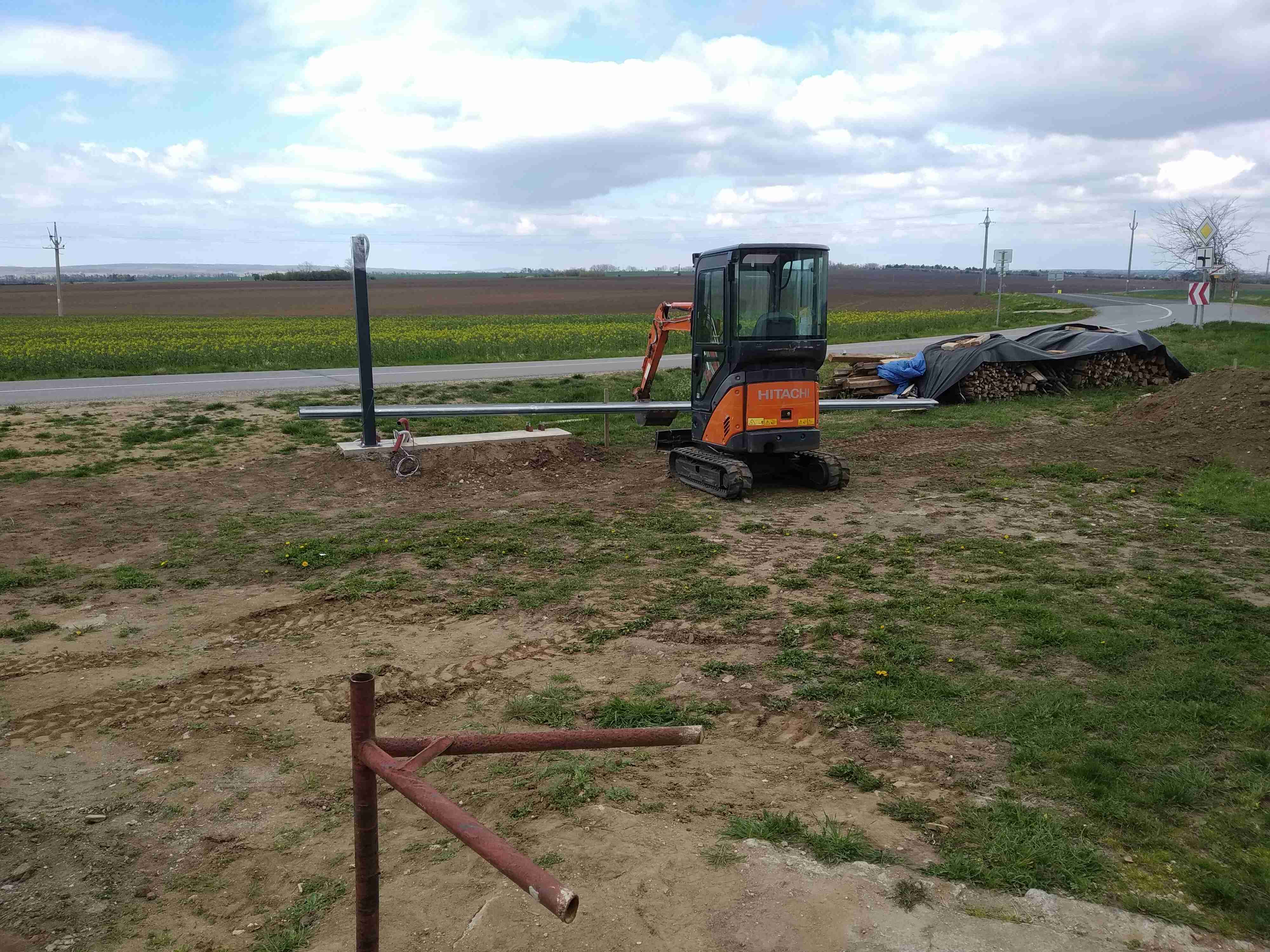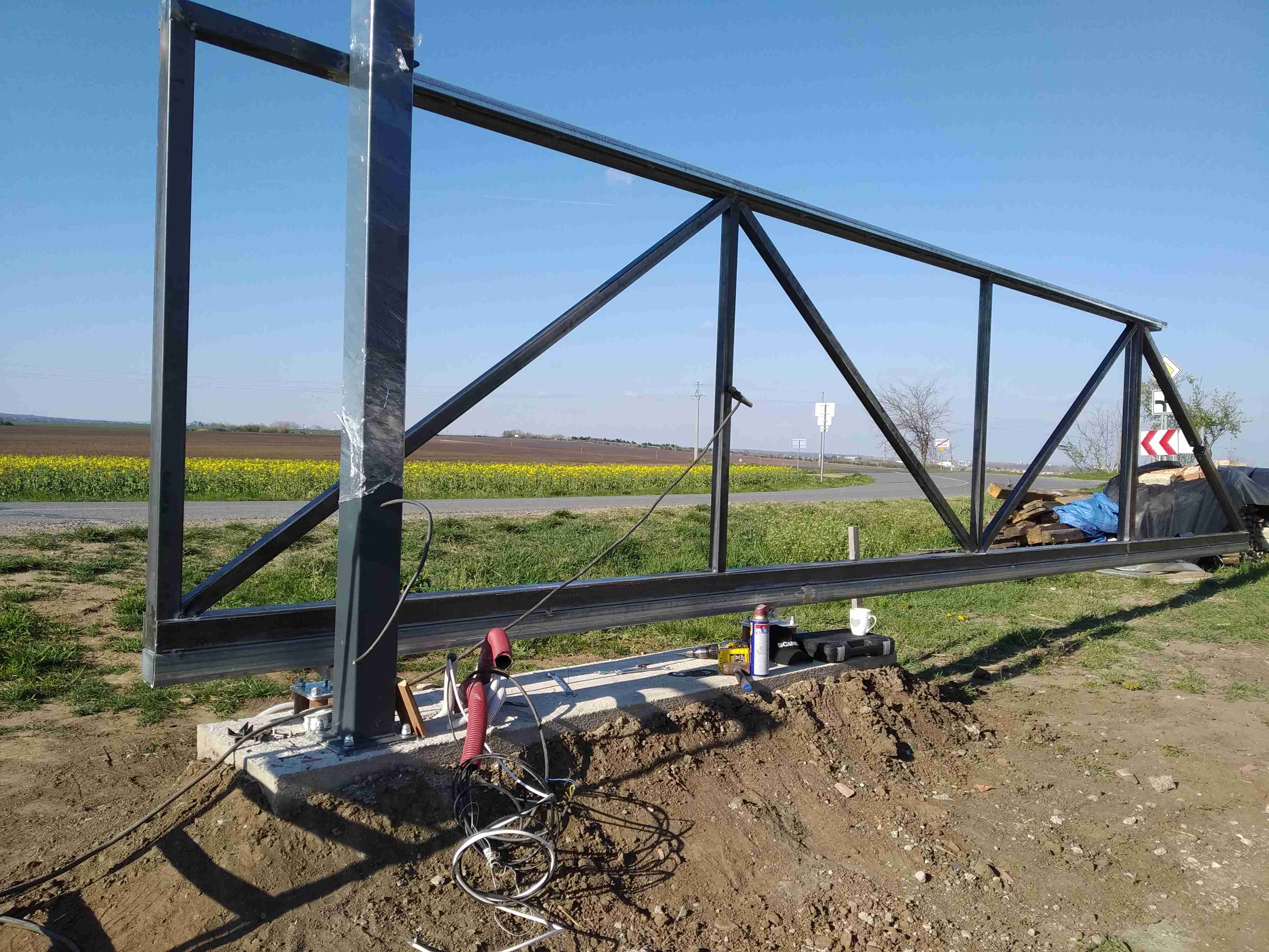 Podle sklonu stínů na fotkách odhaduji, že ta brána se bude pohybovat severo-jižním směrem, takže sluníčko na ni bude svítit z jedné strany dopoledne a z druhé strany odpoledne.