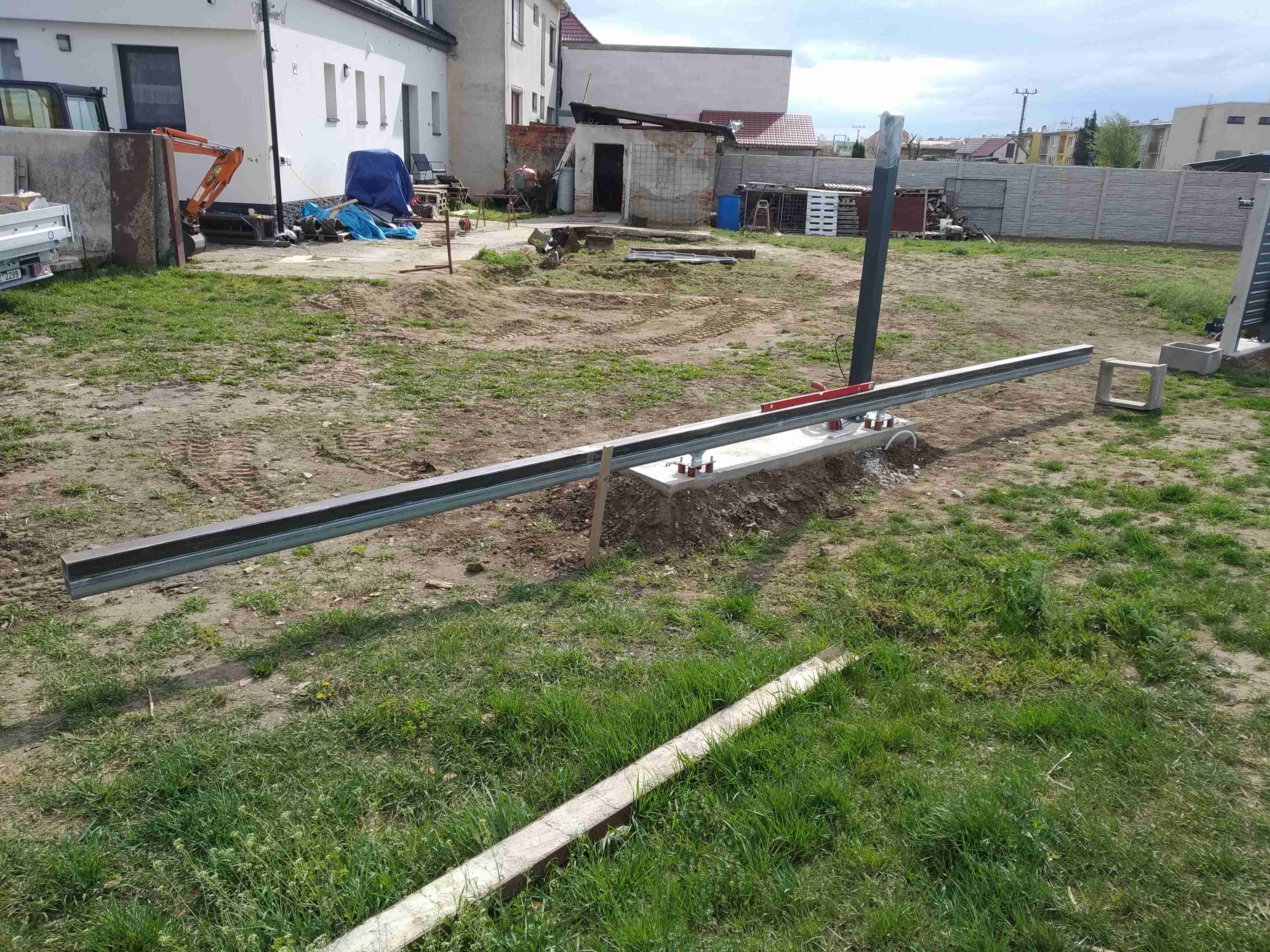 dostal jsem nůž na krk a musel začít makat trochu i na zahradě, tak jsem navrhl, vyrobil, osadil a zprovoznil menší samonosnou bránu s brankou průchod 1m, průjezd 6m. Dělal jsem ji přímo na místě, jen ta šína s nosným profilem měla přes dva metráky