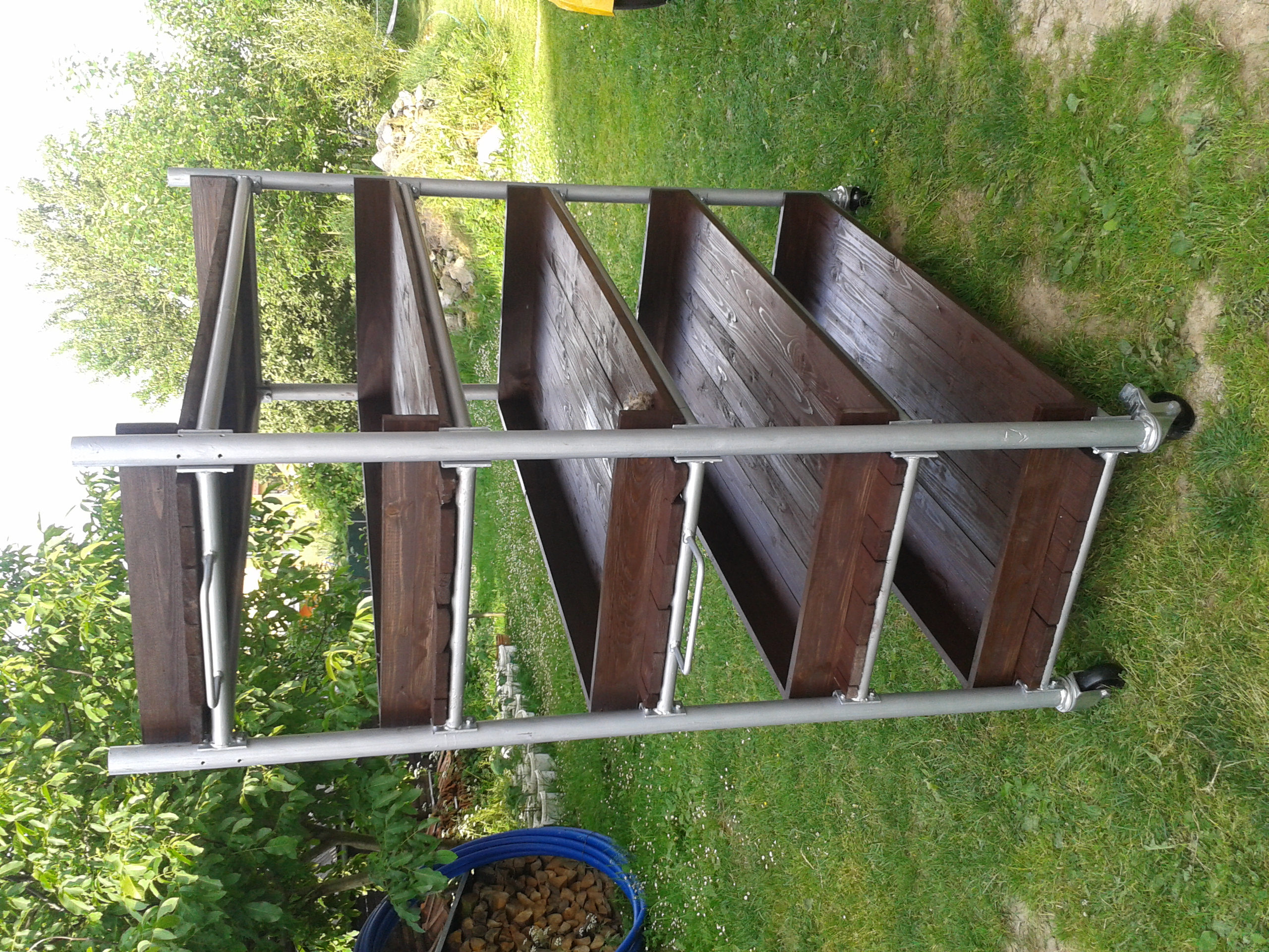 Nosnosť jedného kolieska 200 kg. Kvôli stavebnej výške som nešiel do väčšej nosnosti. Spodná polica je už stabilizovaná najťažšími kúskami : ))