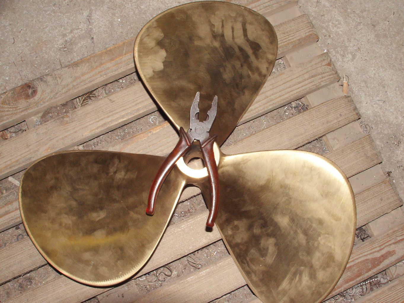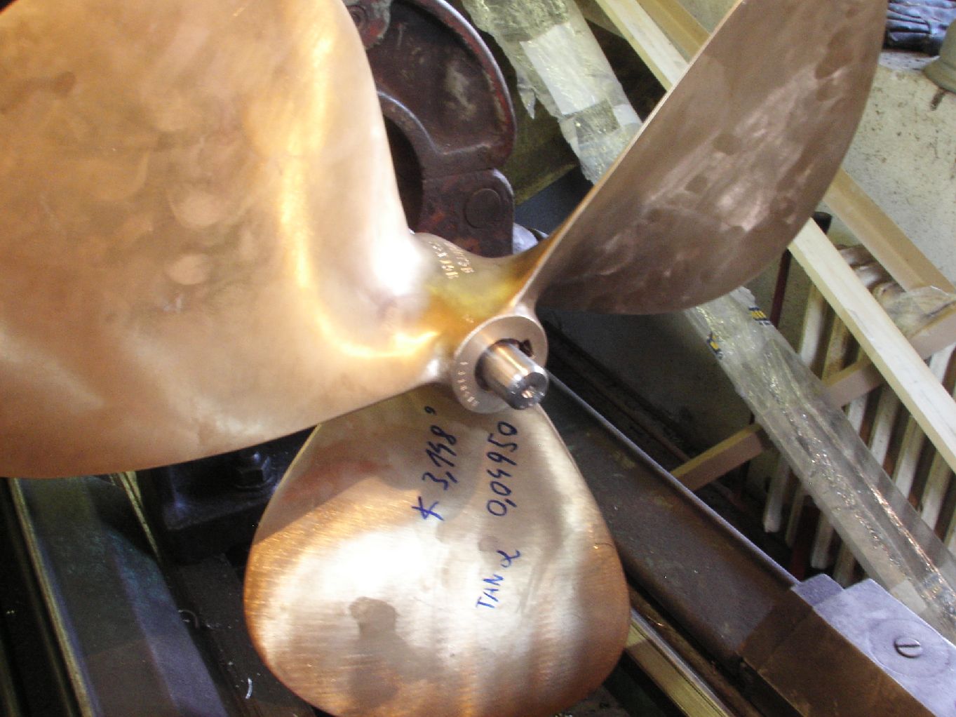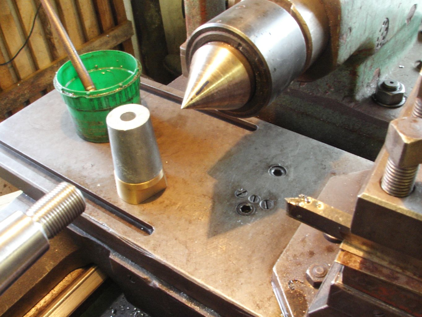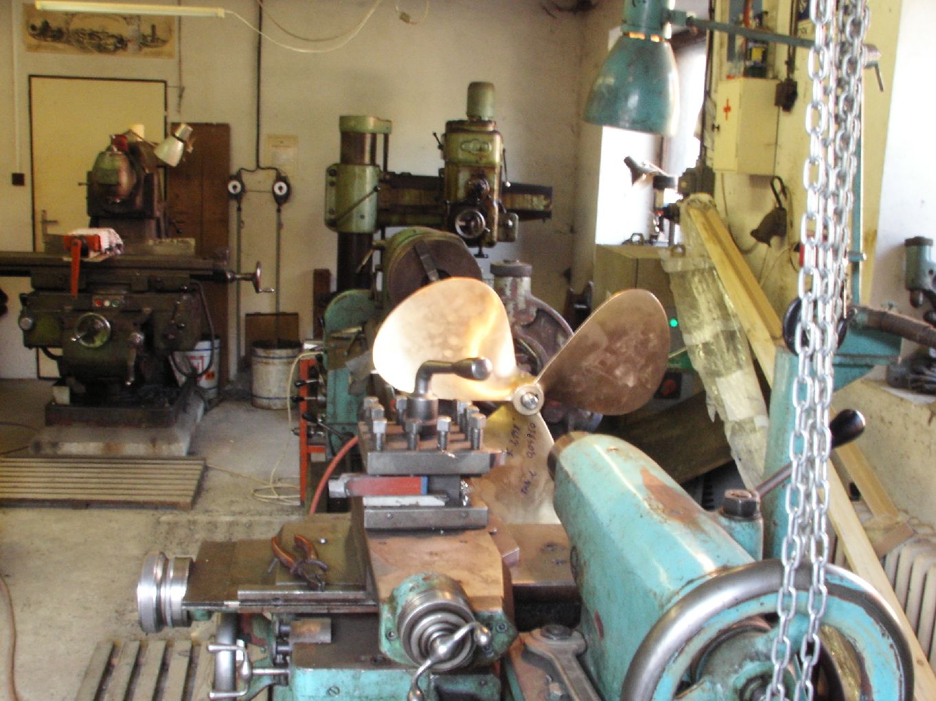 4 metry dlouhá nerezová lodní hřídel průměr 50mm, u které se upravoval kuželový konec pro jiný typ lodního šroubu (nějaký inteligent objednal špatnou hřídel).