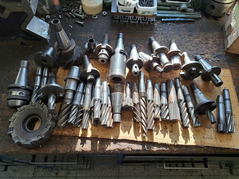Soubor starých nástrojů a upínačů. Žádná paráda, ale na "kovozemědělčení" ještě poslouží. Cena 2000Kč. Trny ISO30 na samostatné fotce 1500Kč. Např. do křížové hlavy. Osobní převzetí Čelákovice. Inzerováno i jinde.