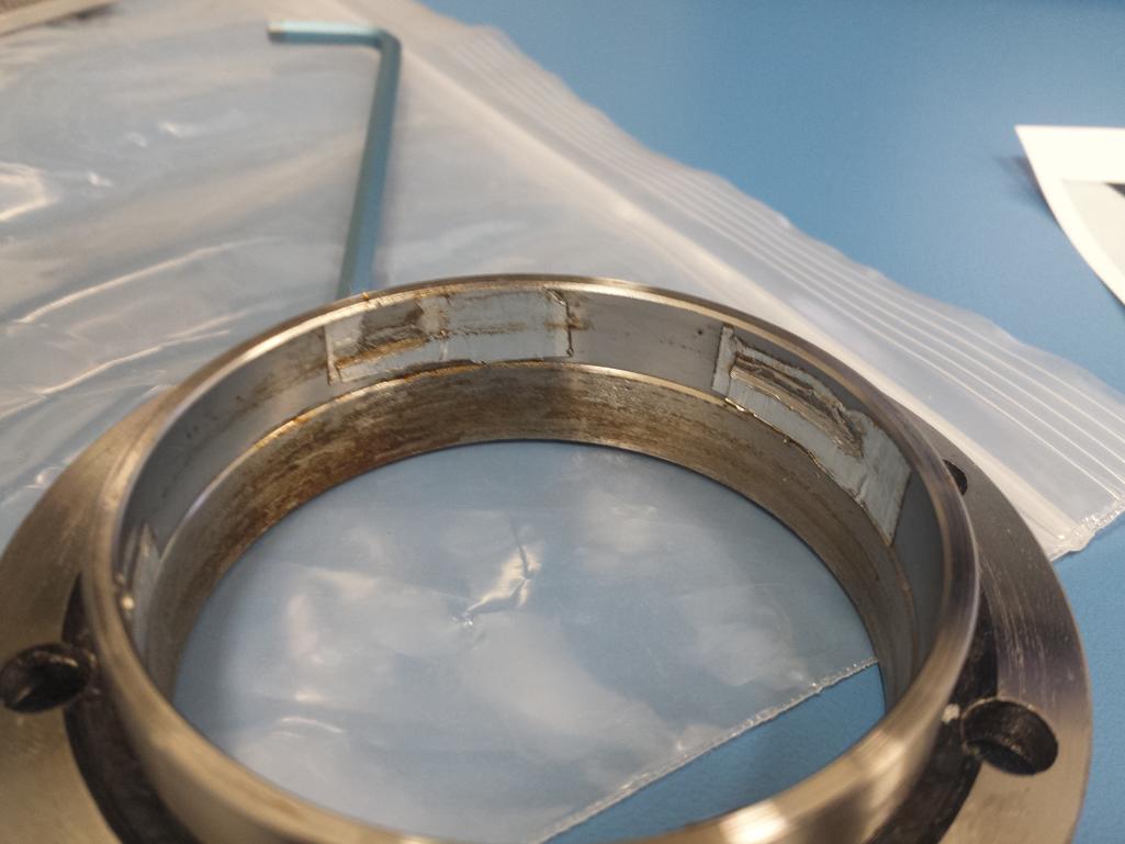 Aj keď sme trochu OT, napadlo ma ešte doplniť k čínskym BT30 ATC vretenám z aliexpressu a podobných zdrojov. Cena je lákavá, no a aj napriek tomu že všetci máme predstavu o kvalite čínskych výrobkov a očakávame lowcost ložiská, dokážu prekvapiť aj otrasným dielenským spracovaním. :) Nižšie posielam obrázok labyrintového tesnenia o ktoré sa zároveň opierajú ložiská. Nesprávny rozmer "zachránili" nalepením hliníkovej pásky. Použitie hliníku na niektoré ďalšie diely o ktoré sa opierajú ložiská asi rovnako nebude najvhodnejšie.