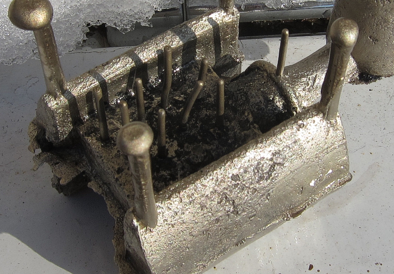 A tady je ukázka toho, co udělá ta chybějící licí jímka a když chybí struskovák před odlitkem. :(