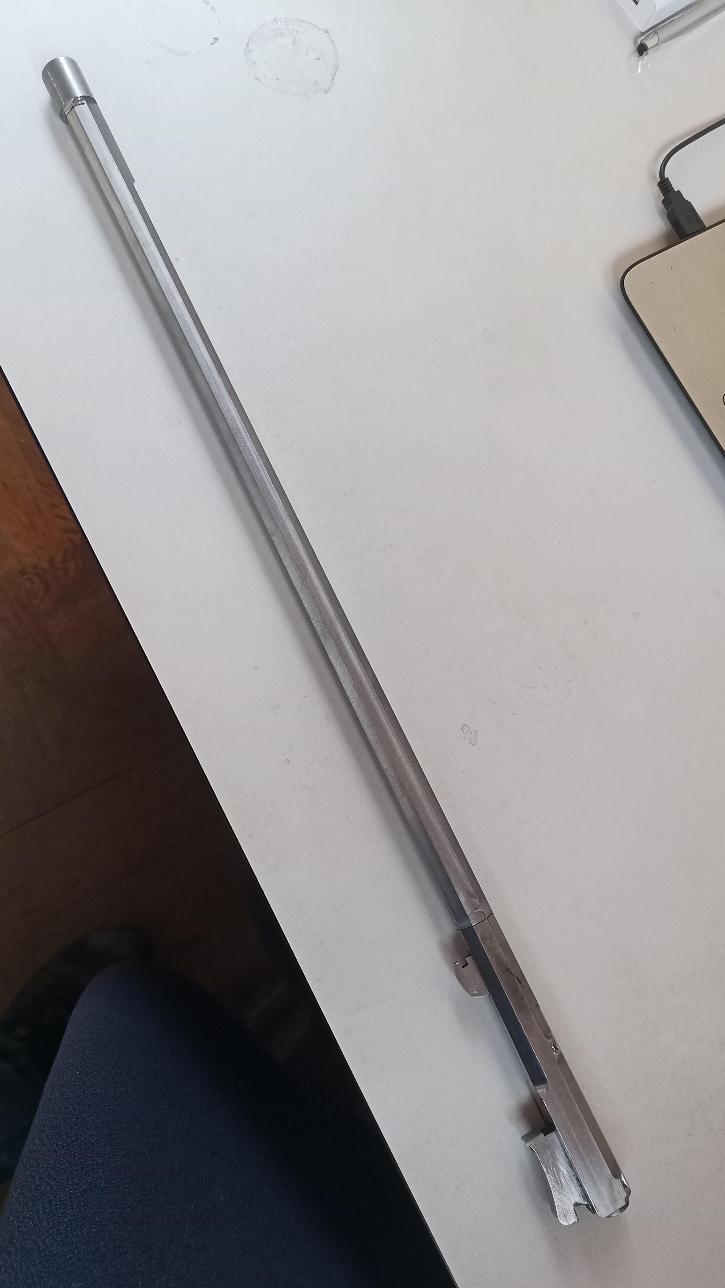 Material je nejaká 15stka, a je to normálne robené cez pajkovanu hlavnovu objímku. Na objimke sú haky. Bežne sa to takto robí. U nás sa ale robil len ten osem uholnikovy "ihlan", všetko ostatné si robí už puškár.