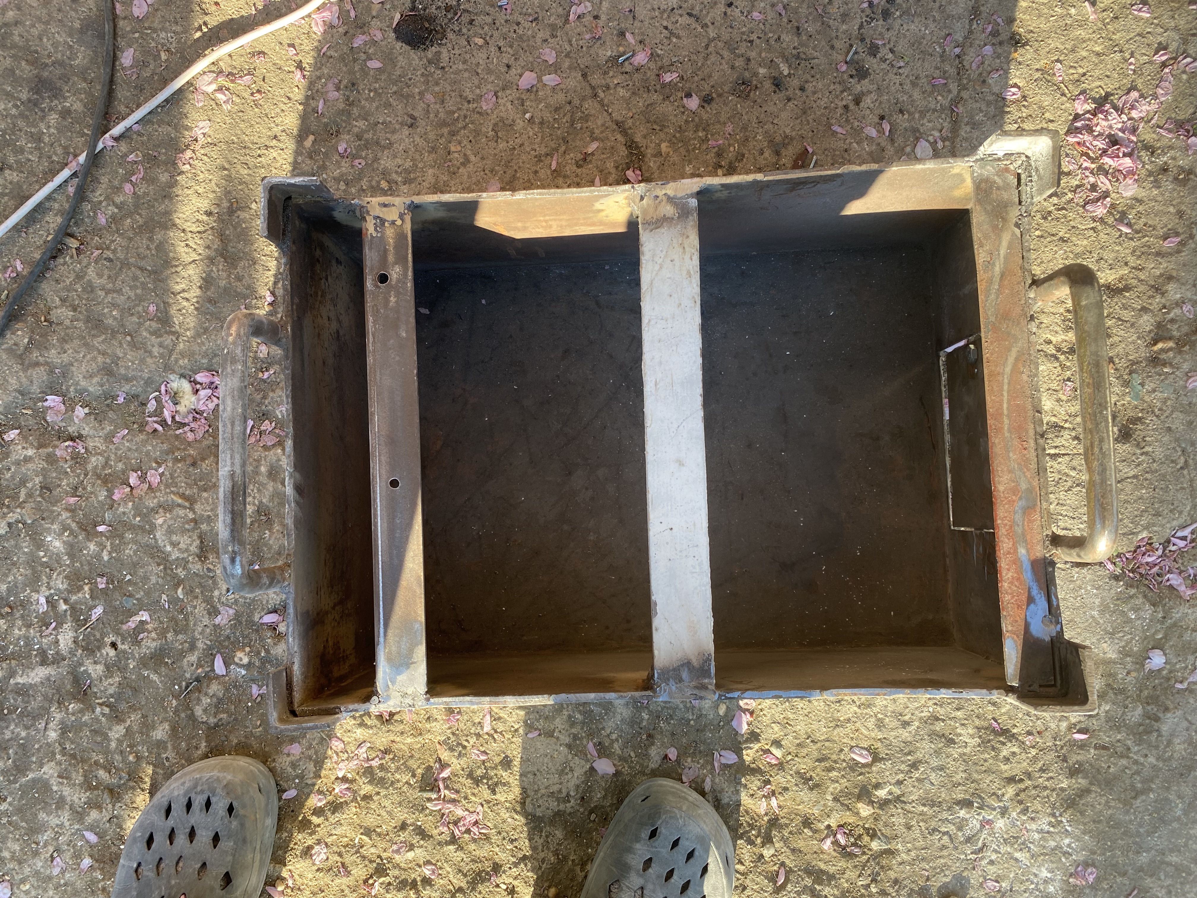 Základ je stará použitá fabrická né úplně rovná masivní ocelová bedýnka s uchama (rozměr cca55x35cm) , z burzy ( Prodávají tam různé vybavení , z fabrik - jako industriální nábytek)