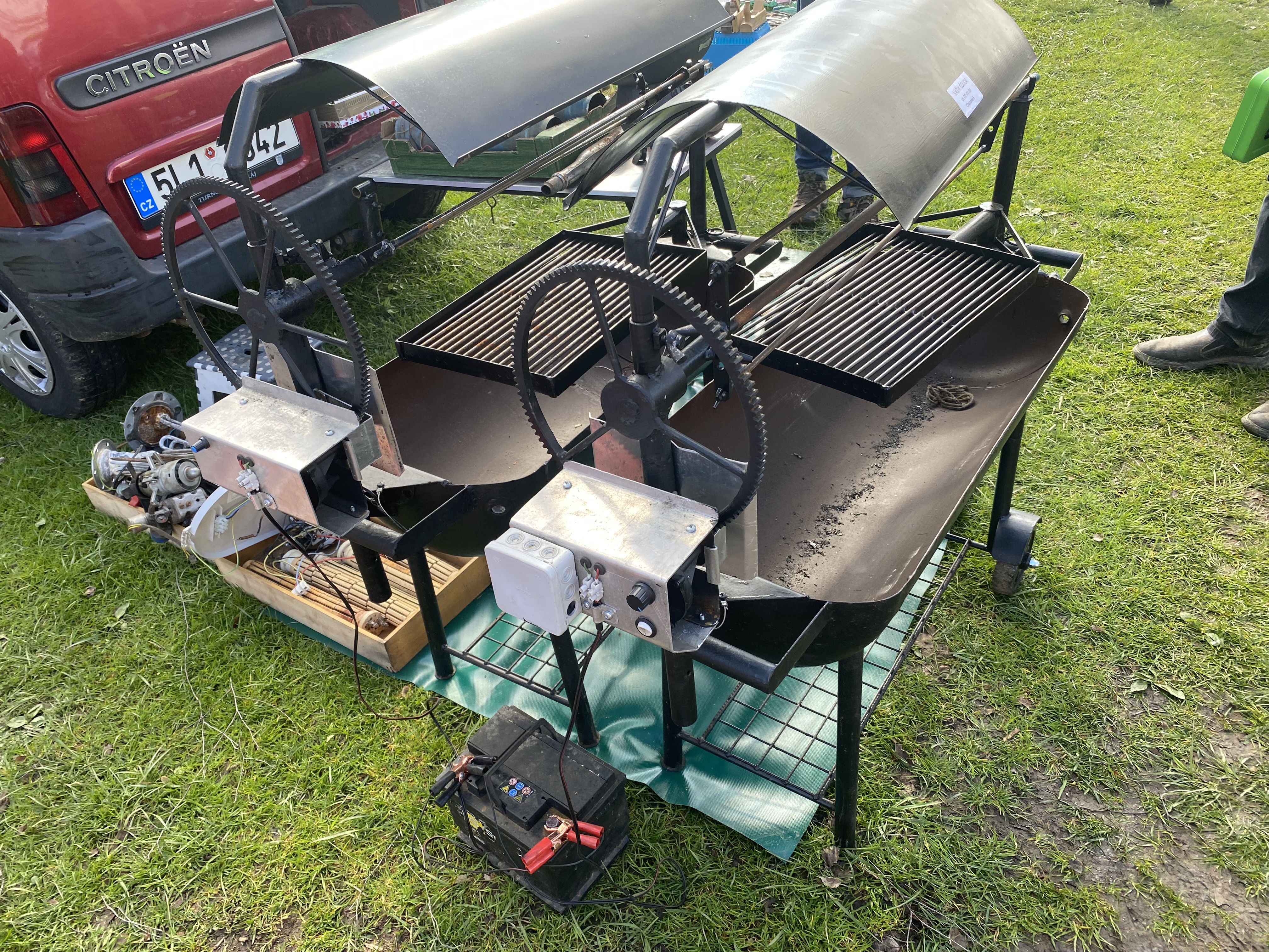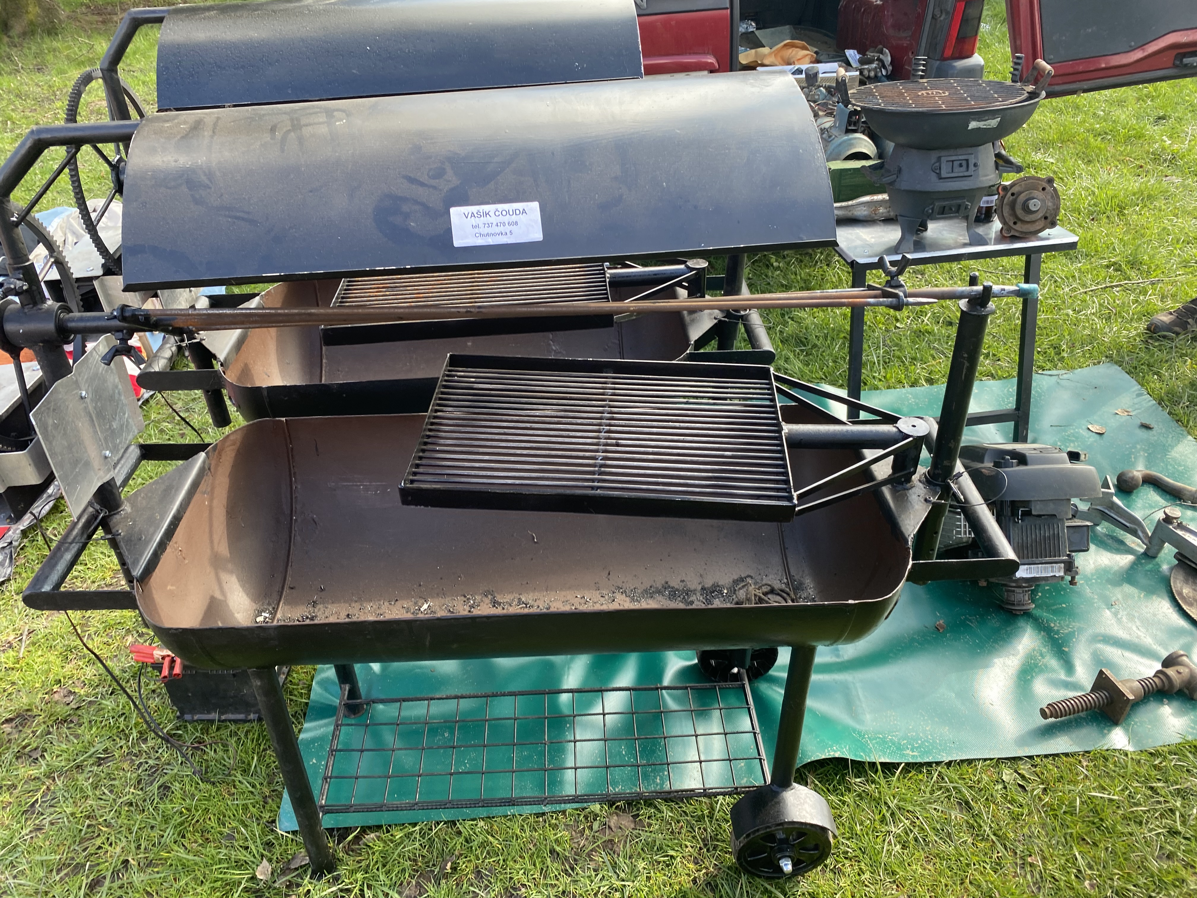 Na burze už roky prodává grily jeden pan . Dělá různé velikosti ale