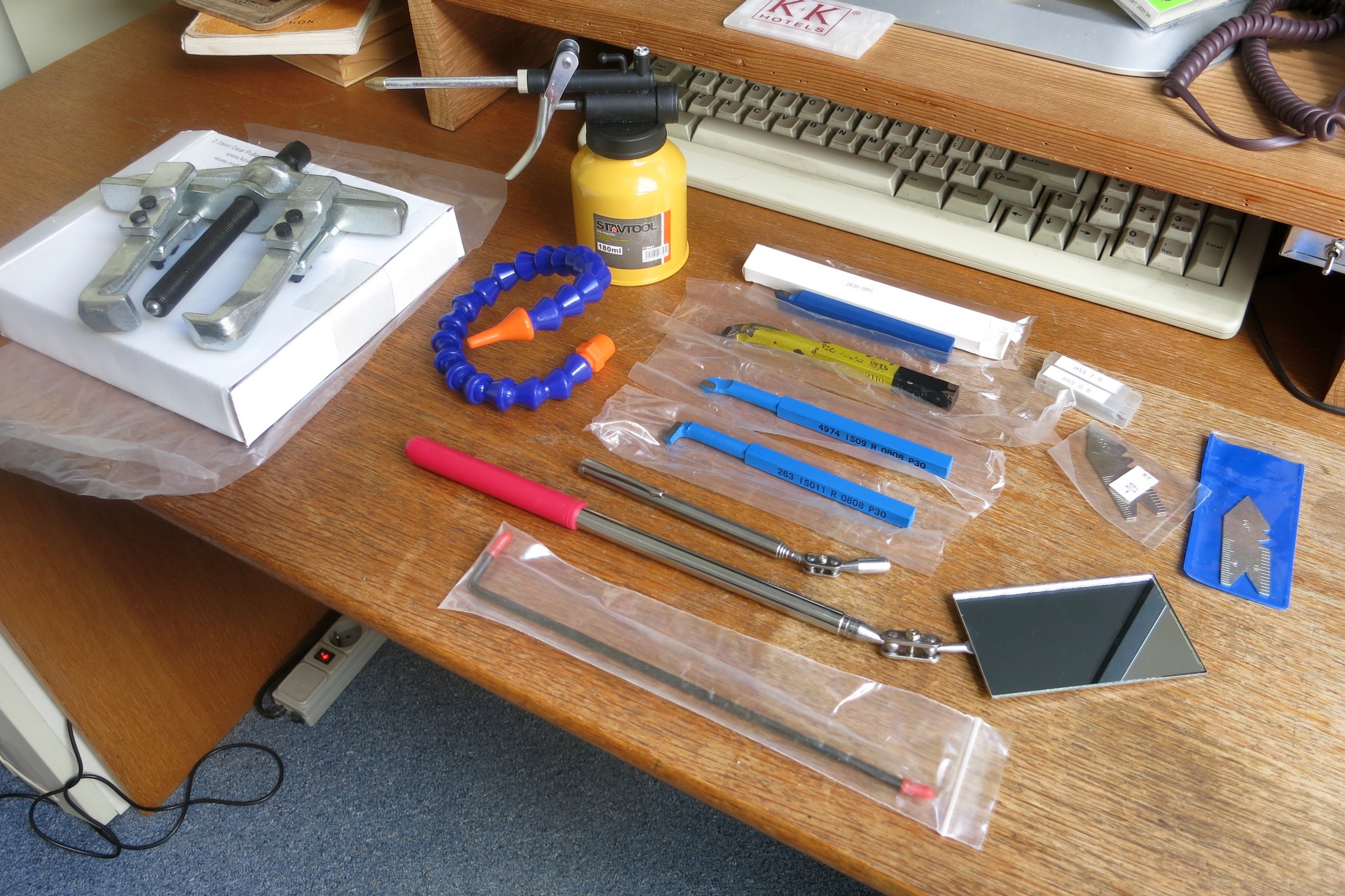 Zdar, dlouho jsem mazlíka zanedbával, ale to se brzy změní, hodlám si pohrát s upínánim řemenice, taky celkem koketuji s myšlenkou předělat to přecijen na pevnou sestavu s motorem, je to takle sice příjemně ukliditelný, ale motor v tom stole neni nic moc zatlumenej, co se hluku týče a naopak to spojení řemenic je gumový až moc, je to docela cítit, když to trochu víc zabírá, uvidim. Každopádně jsem se dozásobil (primárně šlo o nožík na vnitřní závit, kterej jsem neměl a budu poprvý potřebovat a pak se tam nabalilo pár dalších užitečností, když už se éšopovalo :)).
