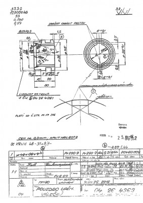 Tak sem zase přidám pár výkresů. Snad pomůžou s pochopením funkce (dostatečně popsanou Sancho Panzou) a třeba si i někdo vyrobí chybějící dílce. Mám poznámku k válečku, do roku 1969 jsou drážky ve vřetenu široké 7 mm a váleček je pr.7x7 , poté došlo ke změně drážek na 6 mm a tím pádem i ke změně délky válečku. Takže pozor na to jaké máte provedení vřetena. Materiál a tepelné zpracování je jasné z výkresu.