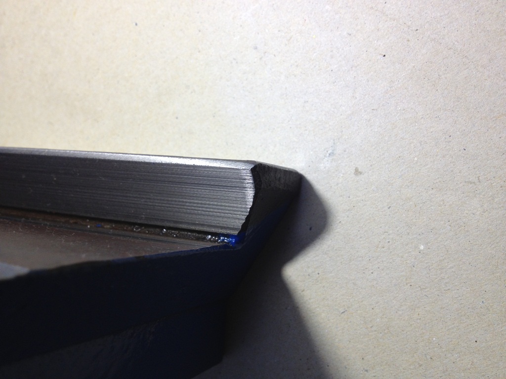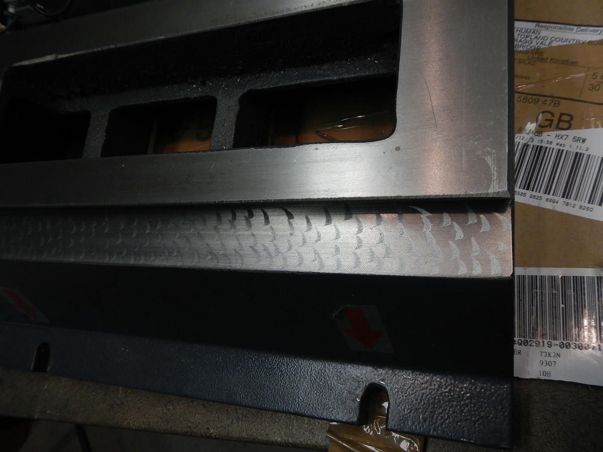 . Pokud mám škrabák s nějakým rádiusem, tak přeci po zatlačení do materiálu budu mít jen rovnou rýhu širokou podle hloubky zatlačení, ne? Tady vidím krásné měsíčky a ještě na okraji s prodlouženou hrankou.
