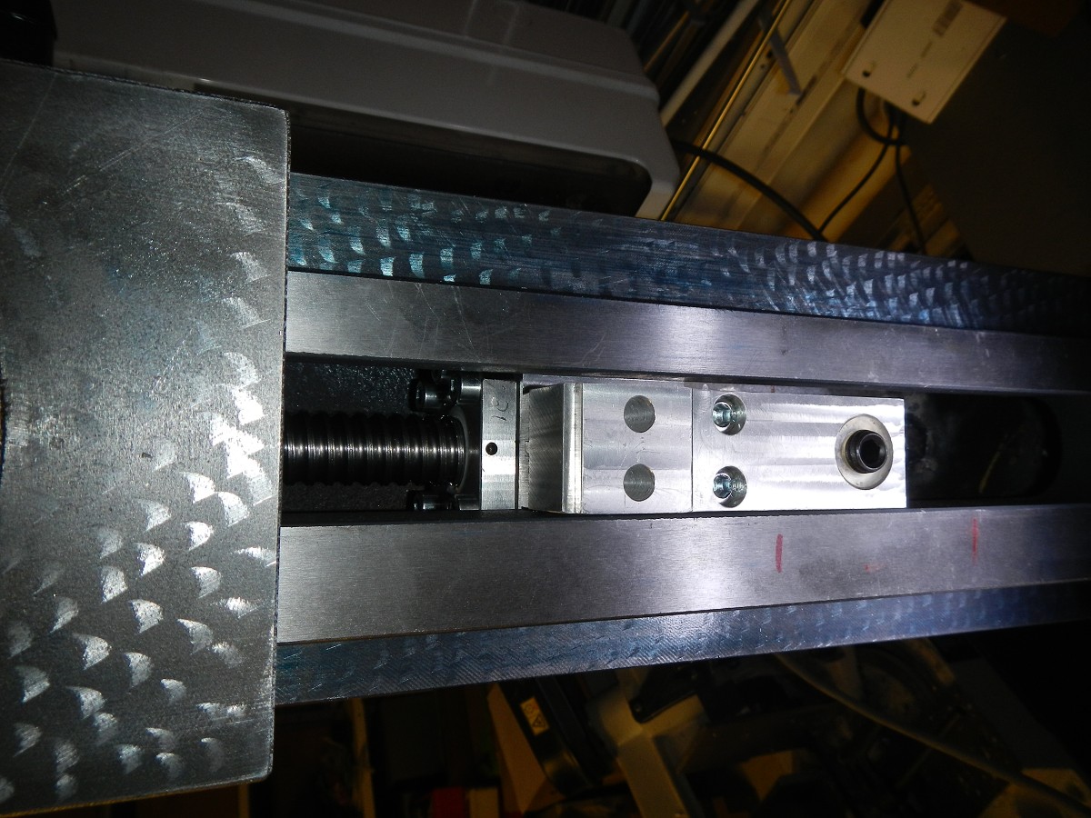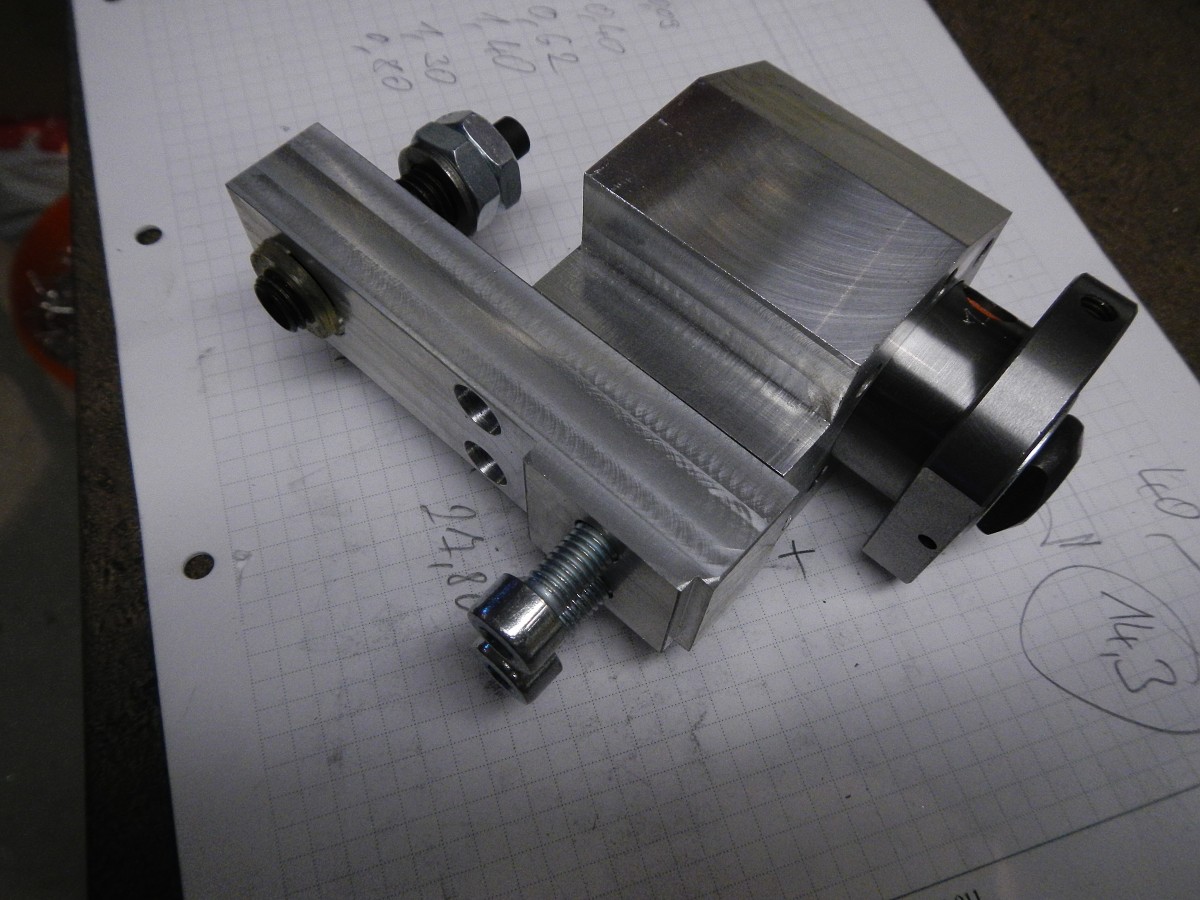 za zmínku snad stojí spodní upínací šroub (imbus červík M12), nelíbila se mi příliš velká páka působící na původní matku, z důvodu zachování posuvu nejde matka rozšířit směrem nahoru.