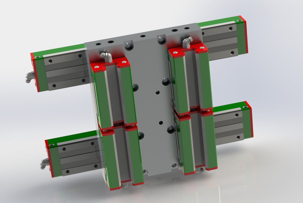 Ty plochy pro lineáry z boku klidně udělěj, pokud to máš kde nabrousit. Běžně se to používá. Jen ty lišty udělej v kuse a díry udělej mimo těch v kolejnicích, klidně i mezi ně doprostřed. Lištu udělej silnou jako koleici. Stačí tam šrouby 8.8, a kolejnice raděi 12.9. Jak tu bylo uvedeno výše, šířka plochy pro kolejnici mínus 0,15 až 0,25 mm šířky kolejnice.