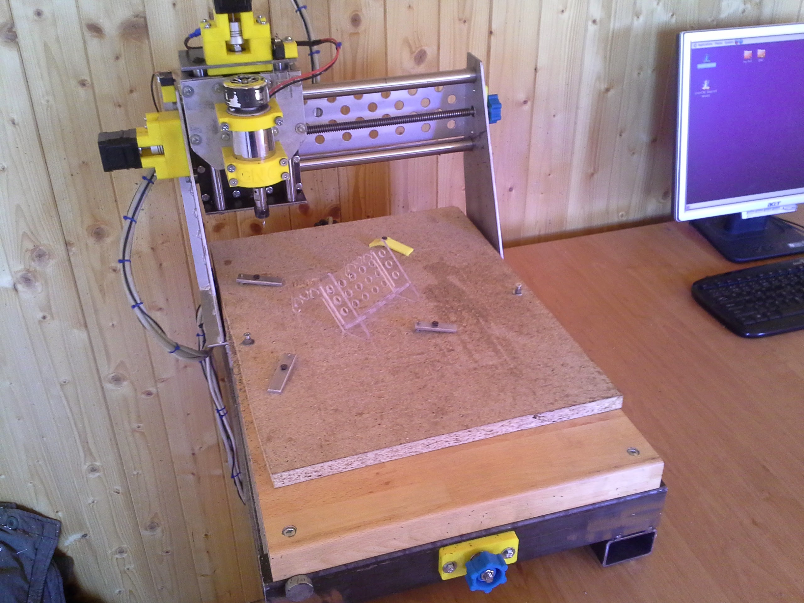 Tak jsem konečně dospěl k funkční mašince . zatím se učím ale plexi a ostatní plasty to frézuje pěkně zkoušel jsem hliník , ale jde to jen opravdu jen tak po 0,2 . 3mm frezkou .