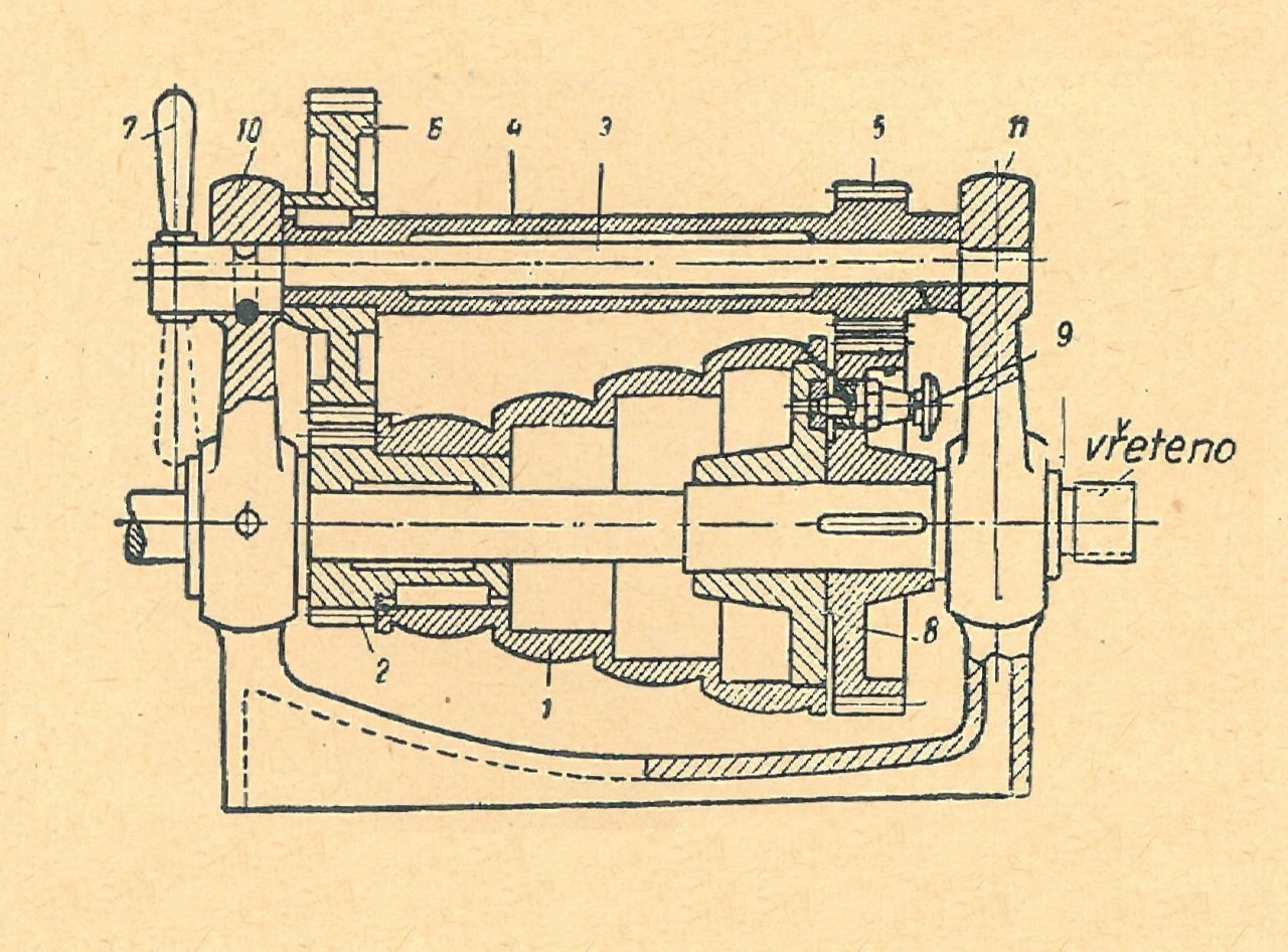 Jinak jsem velice potěšen malůvkou předlohy a vysvětlením od fidela - dík moc za názorné a polopatistické osvětlení, tak se na mne musí abych to pobral. Podstata účelu předlohy je mne teď jasná, ale jak to přesně funguje pochopím asi až to celé rozeberu kvůli vyčištění a uvidím kompletní konstrukci. Pochybnost zůstala, protože teď mám z toho dojem, že hřídel vřetena je rozdělena, což asi nebude... Již se mně ale povedlo díky tomuto vysvětlení sundat univerzálu viz. níže.