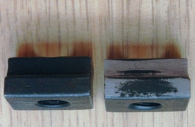 a takto vypadá jejich kvalita vlevo originál, vpravo po "dodo" pilníkem v ruce, aby byla "splněna" rozměrová norma DIN 650: