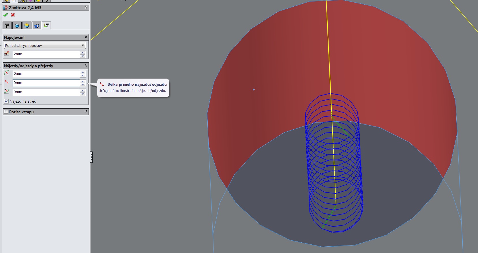 No a jak potom funguje přímo ta funkce v HSM co se jmenuje frézování závitů? nevíš? V mém případě mi vůbec nevadí když fréza pojede od spodku díry nahoru jak jsi popisoval na začátku tohodle tématu. Ssmozřejmě řešení s kreslením křivky mě po přečtení celého tématu napadlo, ale jak jsi psal není to to krásně řešení a zajímá mě jak funguje přímo ta fce v HSM na tohle. :)
