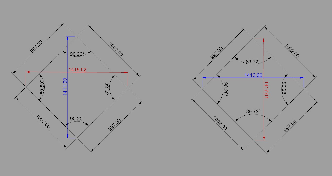 Přikládám čtverec o délce strany 1000mm, pootočený o 45°.