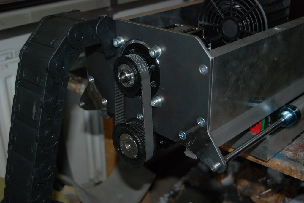 Převod ze serv je řešen řemenem 5M s poměrem 1,25:1. K zajištění řemenic jsem použil svěrná pouzdra.