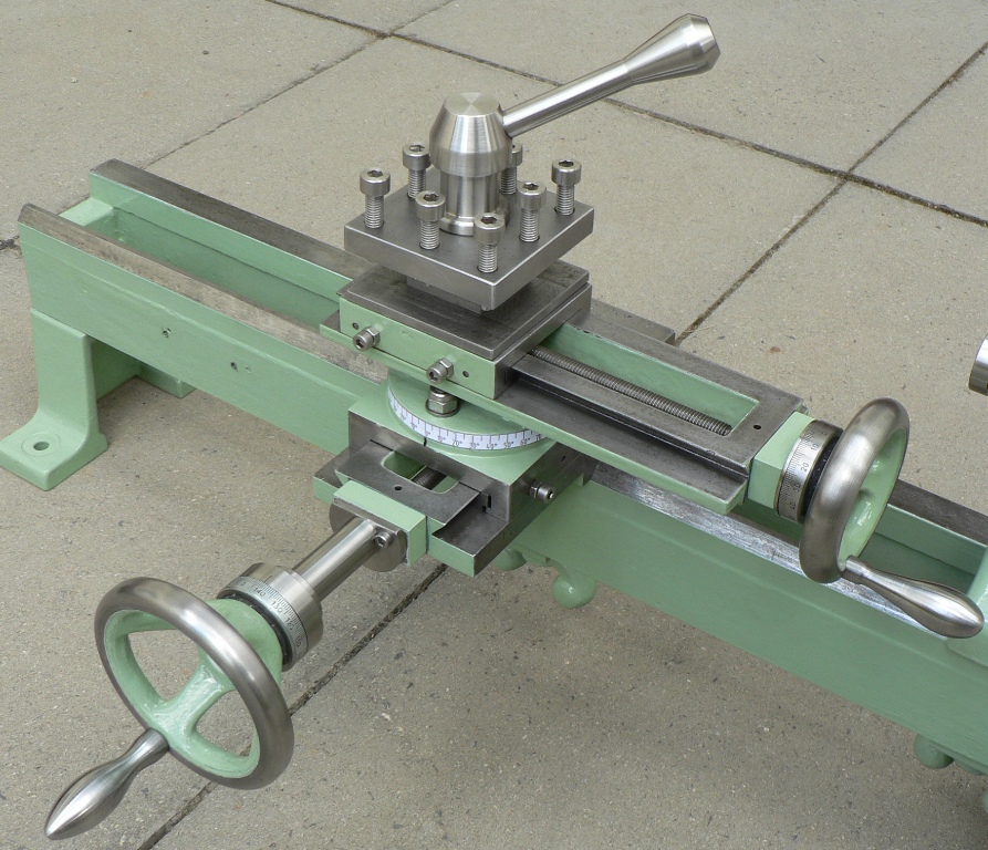 Tak suport jsem vyčištil a opravil. Spodní šroub, utahování nožovky a nějaké věci k noniusům vyrobeny nově z nerezu. Podélný a příčný suport osazen noniusy co dům dal, akorát jsem musel z nich osoustružit vroubkování, protože už na to nebylo místo… samozřejmě nastavit jdou všechny. Příčný suport má bohužel stupnici noniusu na poloměr (150 dílků pro stoupání 1,5mm), ale nový už dělat nebudu. Akorát tu bílou samolepku na úhlovou stupnici udělám novou - stupnici dám dolů a stupně nahoru, ale až bude barva do tiskárny. Další na řadě bude lože, chtěl bych tam ještě nějak napasovat odnímatelný přepínač.