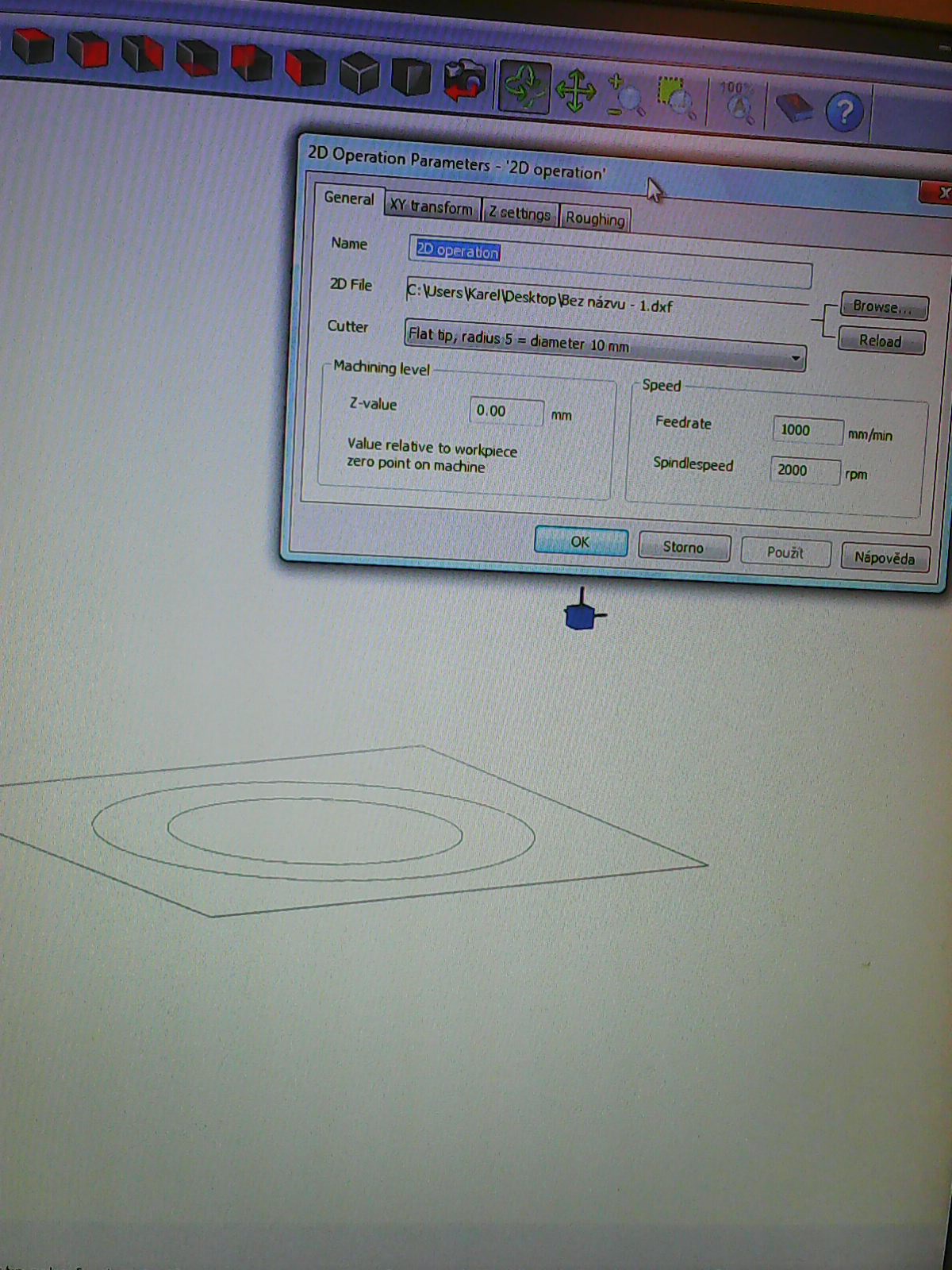 Doufám, že máš nazvaný ten vrták jako drill, ale pro jistotu, klikni na Tools-klikni na Tool table, klikni na Drill a podívej se jestli máš v Tool lenght offset nastavenou 0 - pokud ne tak ji nastav, tady by mohl být problém - tedy pokud máš vše ostatní nastavené správně. Víš Tvůj problém je v tom, že skáčeš z jednoho SW na druhý jako blecha, a pak v tom máš zmatek. Rosťa.karelsklo píše:První problémek s dp...Nejde mi tam natáhnout výkres,píše to něco ve smyslu že je buďto prázdný nebo nepodporovaný.Je to dxfko z corelu takže tam by problém být neměl.