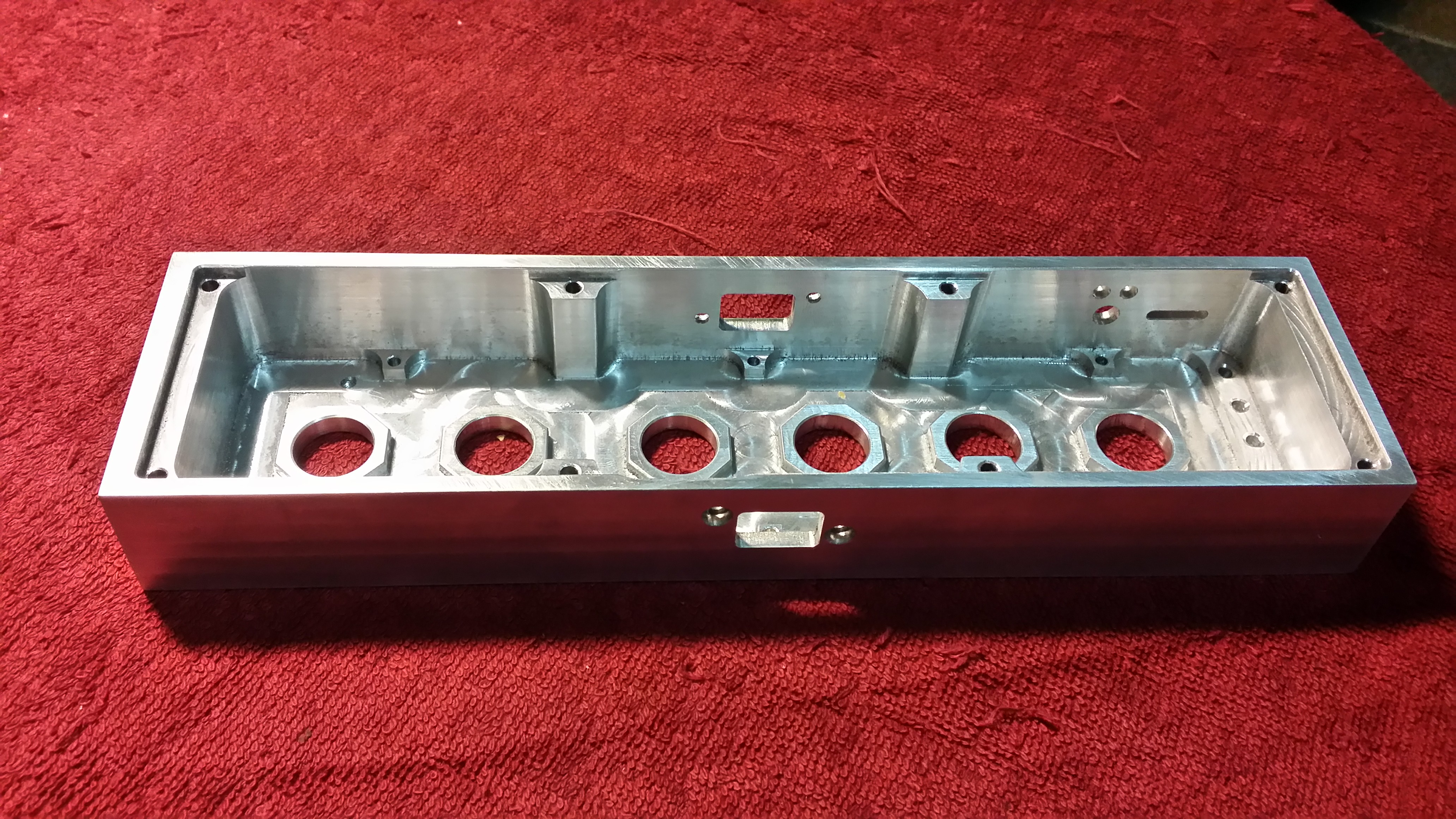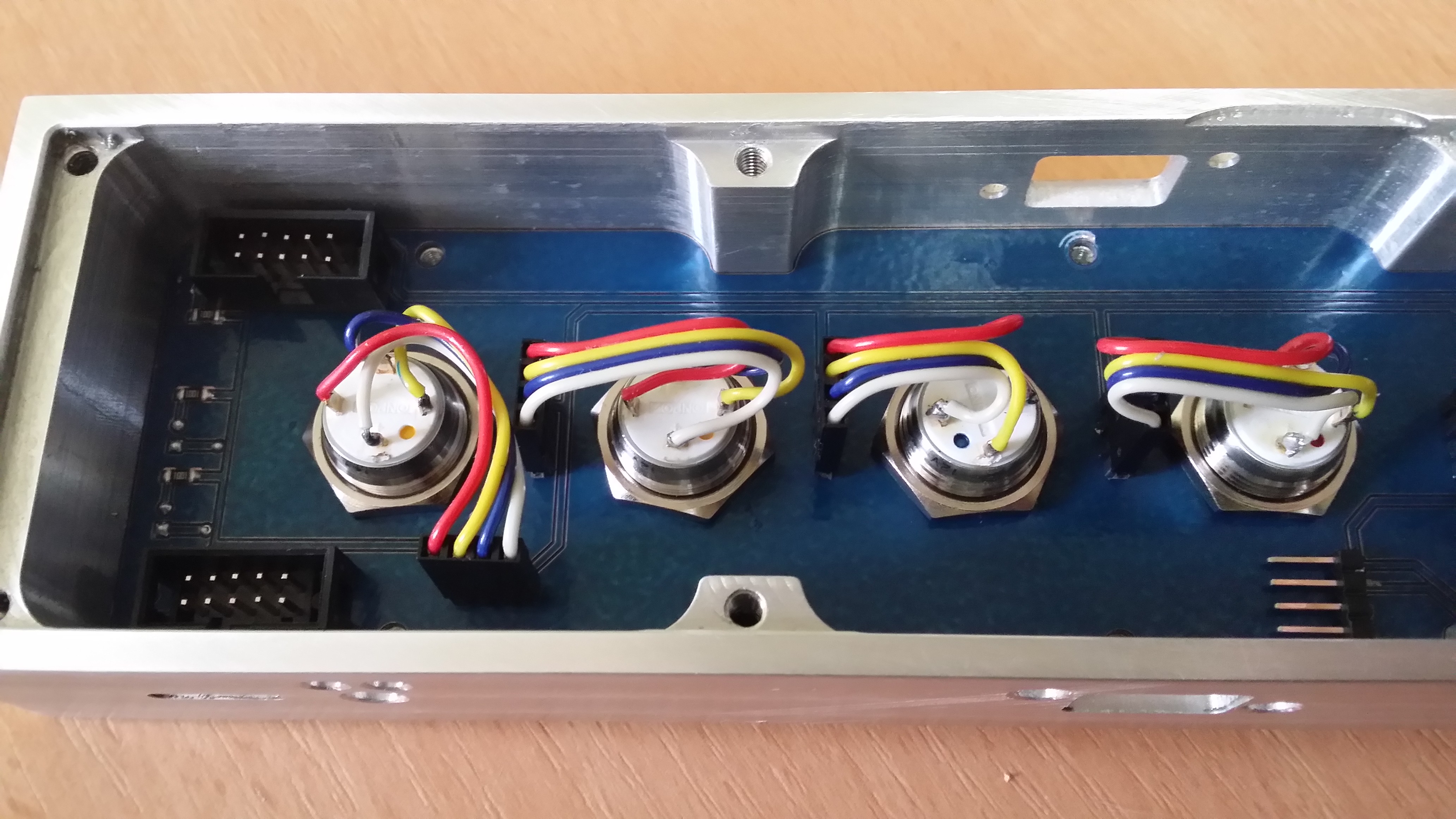 Krabička s vypínači pro ovládáni naší nové CNC frézky. Na boku jsou vidět otvory pro USB.<br />Povrch se bude ještě upravovat.<br />Naší nové frézky kterou ještě nikdo neviděl a pokud nebude dokončena tak ani neuvidí. <br /><br />Nebo možná zě by na youtube????? :)
