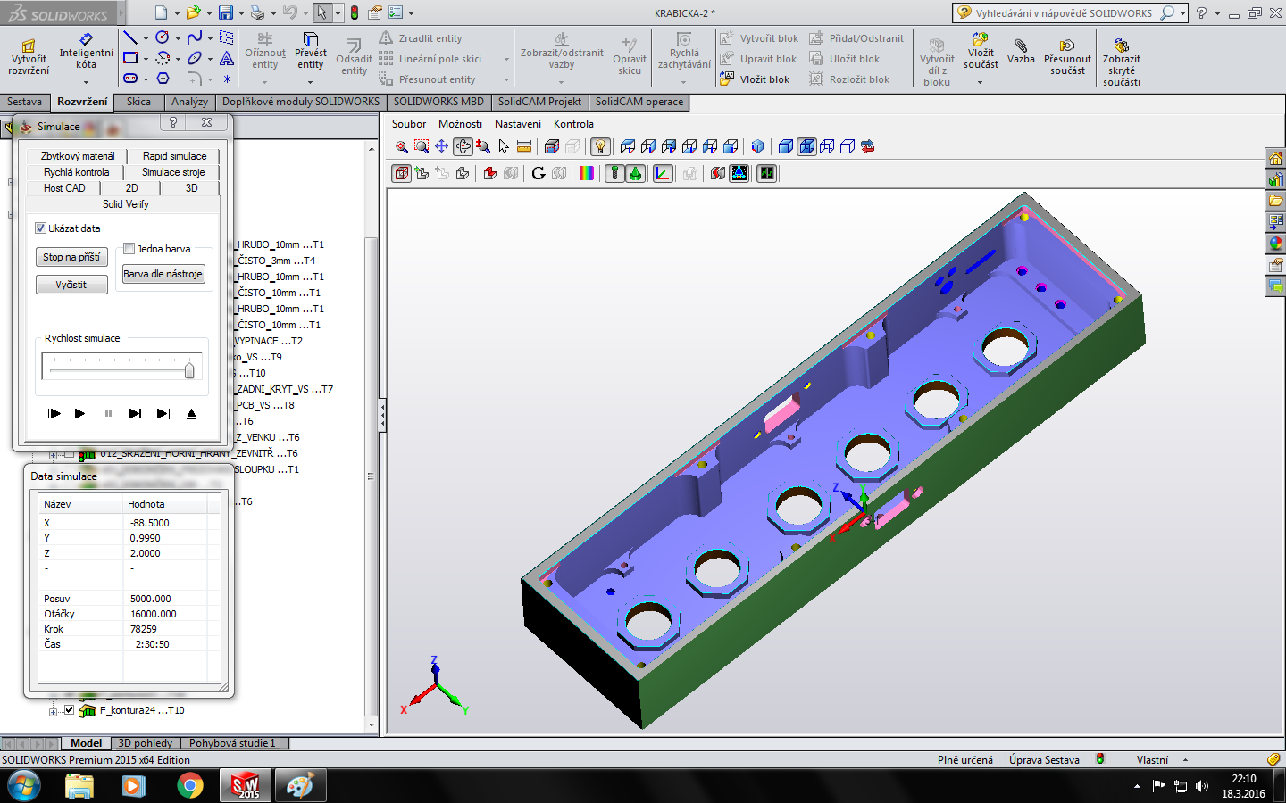 Náhled v solidcamu - simulace