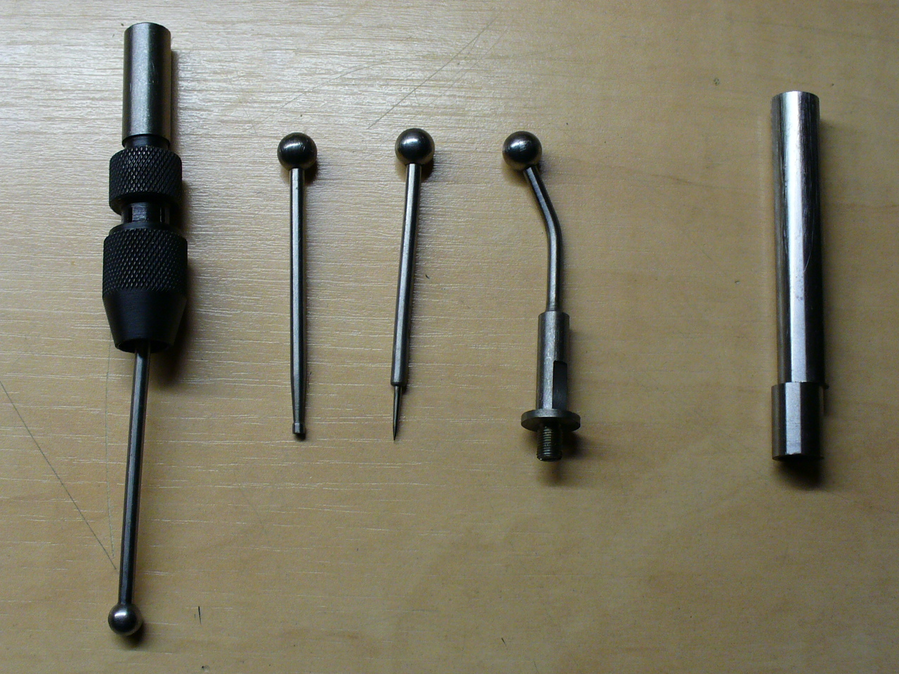 další je disc contact,needle point, indicator holder,ball contact a poslední excentr s pružinkou.