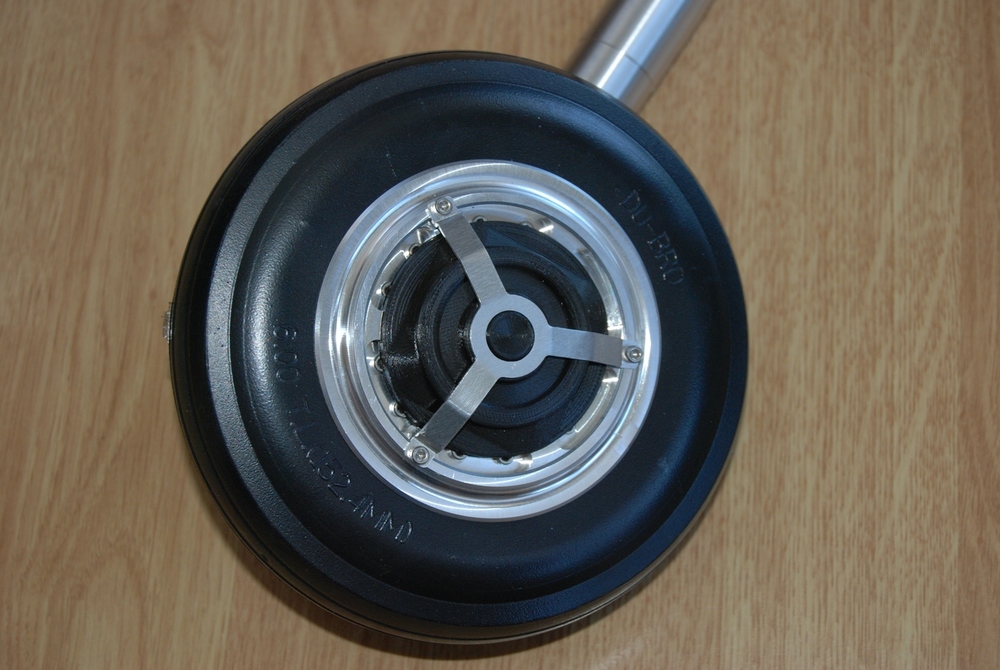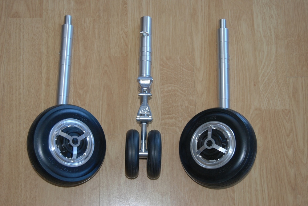 Jde o podvozek na Pilatus PC-21 s turbopropem (délka 3.5m). Nešlo jen o vzhled ale taky o hmotnost. Model musí vážit max. 15 kg.