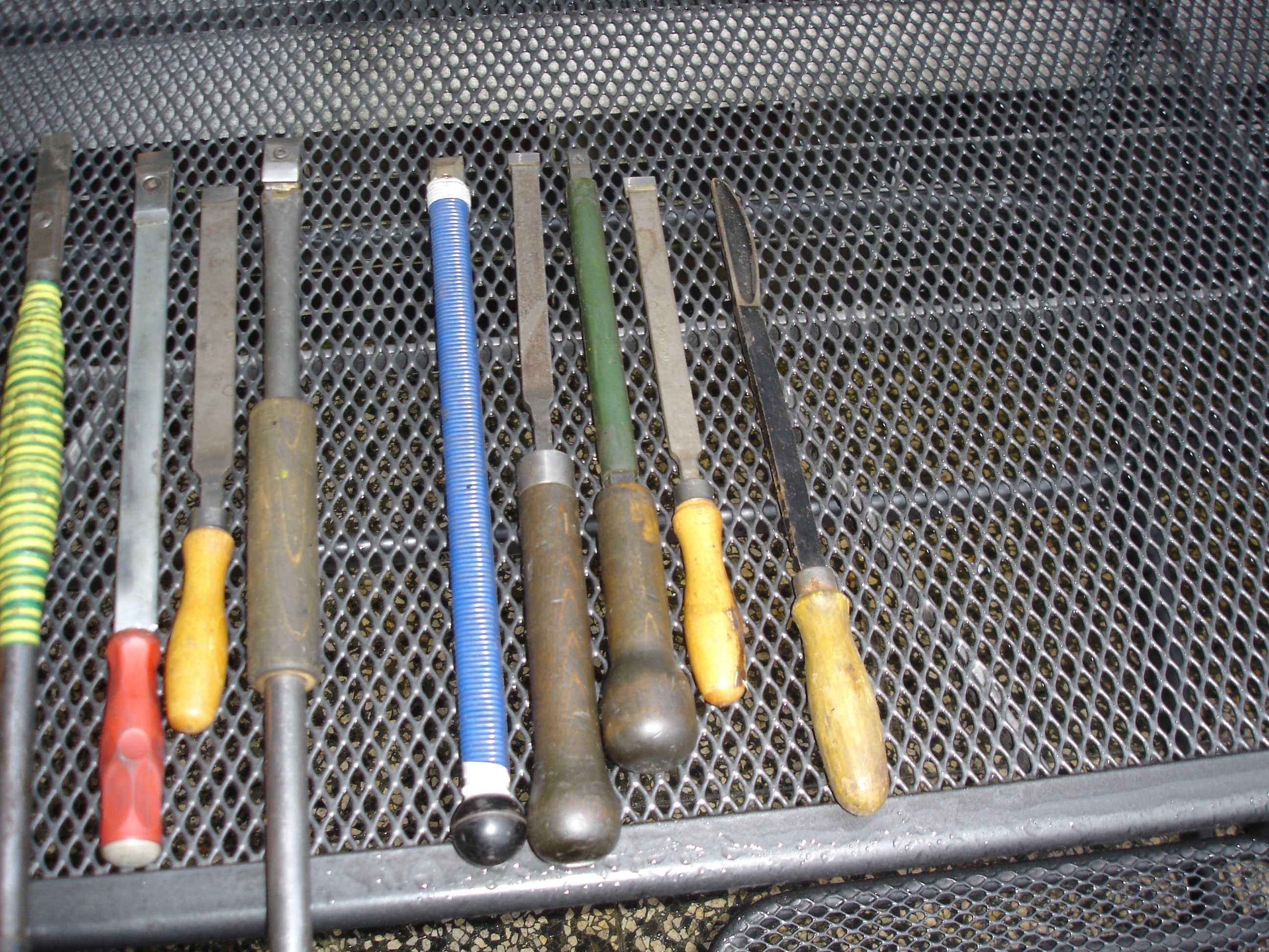 Na toto stačil obyčajný oceľový lyžicový škrabák z Bazoša za 2 eurá, ktorý som tu a tam obehol na jemnom diamantovom brúsnom kameni z Lidlu. Celý proces trval asi 2 hodiny, predsalen tá bronz sa našťastie škriabe celkom dobre.
