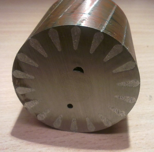 Na prvotní pokusy jsem hřídel vylisoval /velmi náročné/, díru v kotvě jsem protočil a zpět vypouzdřil ocelovým pouzdrem. Domnívám se, že tím by se měly magneticko/elektrické vlastnosti podobat finálnímu řešení. Motor jsem smontoval a zkusil ho roztočit na 15000 ot/min, abych zkusil zda se kotva neroztrhne /samosebou pod rysplotnou a za paletou/. Motor už od 8000 ot výše evidentně ztrácí dech a potřebuje delší rozběhy/doběhy. Krouťák v těch 8000ot už nebude nic moc ale na malé nástroje...
