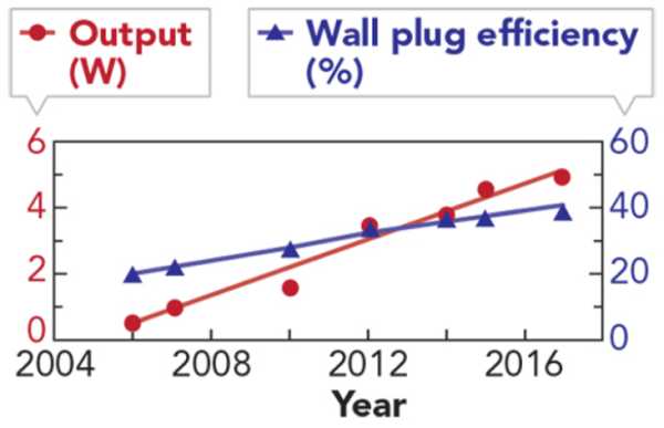 Tenhle obrázek vysvětluje vše. Pokud špičkový polovodičový laser má kontinuální výkon někde pod 6W, tak asi těžko někde na Aliexpressu za pár dolarů koupíme laser s výkonem třeba 15W, že. Takže to vysvětluje tu magickou hranici, proč lasery do nějakých 4-5.5W jsou celkem OK, ale ty s vysokými čísly už jsou spíš jen "víc proužků, víc Adidas".