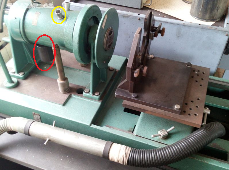 Červeným je zakrúžkované to závažie - dá sa odkrútiť, je na ňom vyrazený moment. Malo by k tomu byť tých závaží viac, ale aj keď by bolo iba jedno, tak zvyšné ľahko dopočítaš a vyrobíš podľa jeho hmotnosti. Teoreticky sa dá všetko merať tým najťažším, ale pri malých momentoch bude výchylka malá a presnosť nič moc.