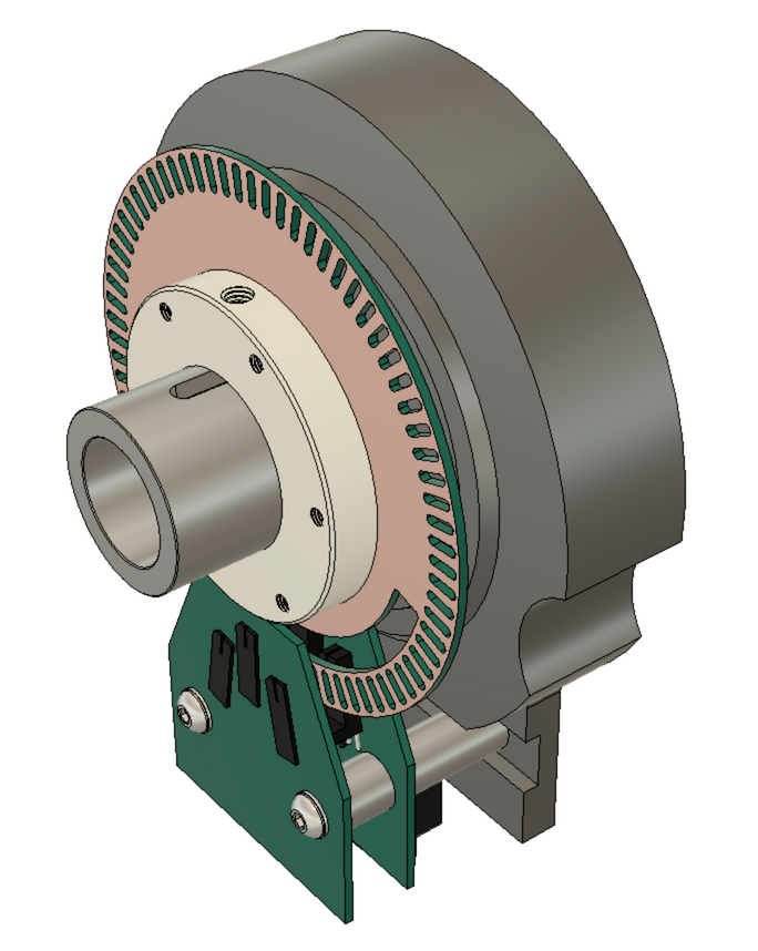 Já jsem tohle řešil před lety když cena IRCu byly moje tři výplaty. Nakonec to nějak fungovalo. Nyní jsem se k tomu vrátil po 20 letech, protože u toho ATC Atase jsem postaven před problém kdy potřebuji zakomponovat do omezeného prostoru cosi, co se neroztrhne při 30000 otáčkách // tím vypadly všechny ty prstencové resolvery // a při otáčkách do 3000 mi to bude schopné dát rozumné rozlišení pro závitování. Zároveň to musí být průchozí pro táhlo upínání.