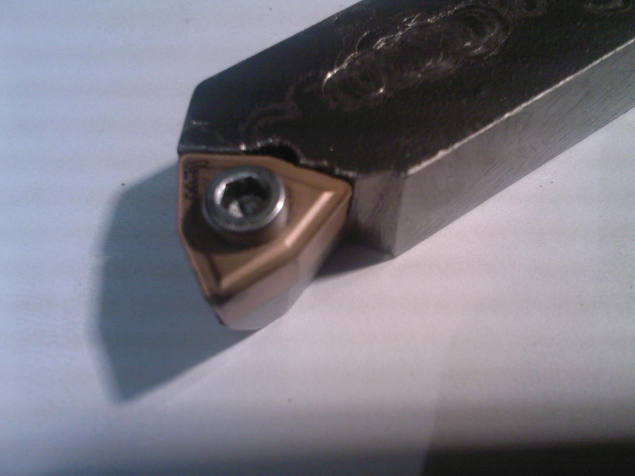 Myslím, že ventil je tvrdej na povrchu, kdo ví?A moooc dobře to teda nejde. Originál RADEKO POLDI má 62HRC, čož to by za určitýc předpokladů mohlo jít, ale tohle je speciálně legovaný na to řezání - to není jako ocel co je zakalena na 60HRC- šlo to blbě (spíš to nešlo).! Nevím kolik bych toho udělal. Destička ujela asi 10mm a špička Fuč