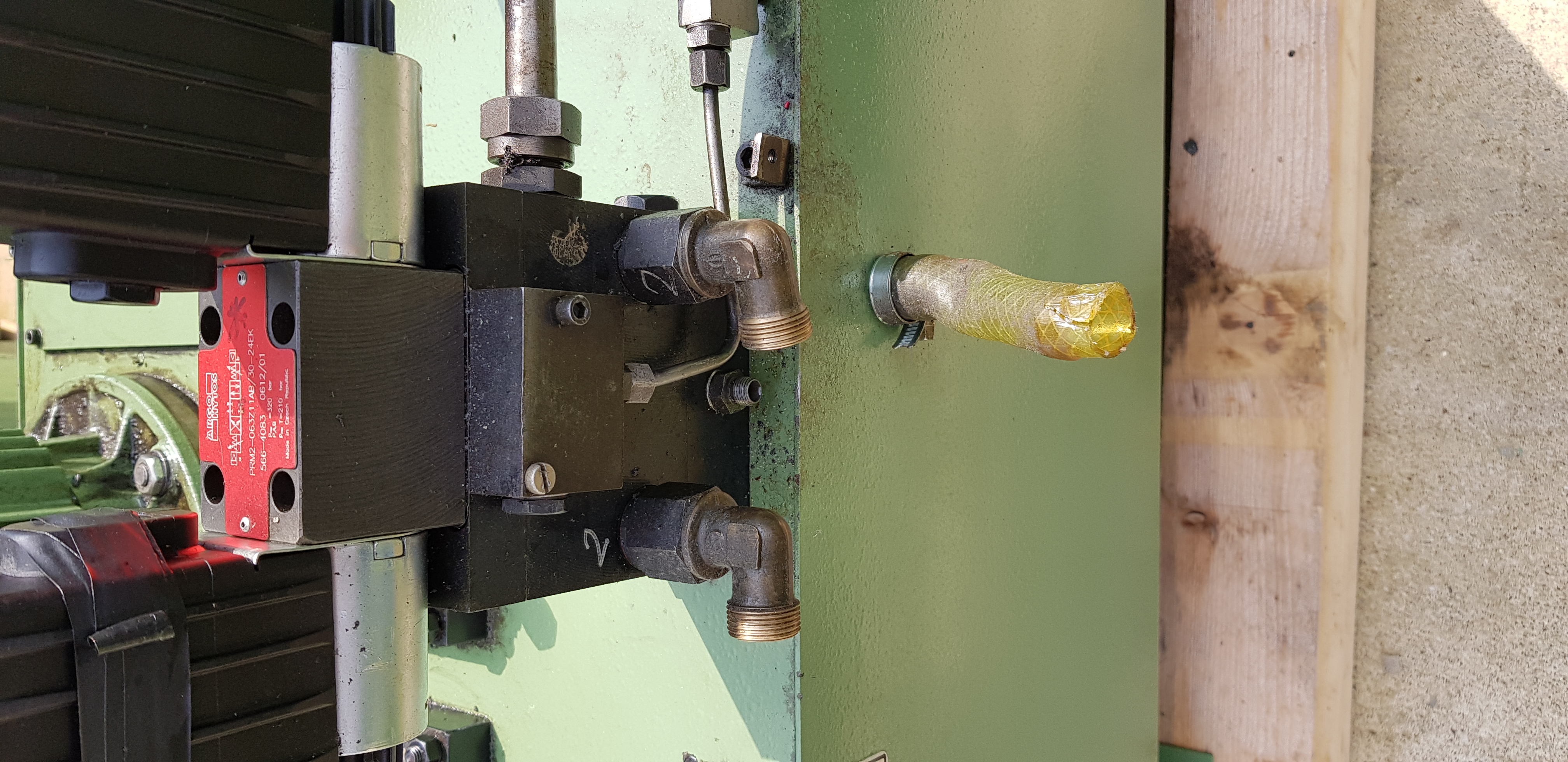 No a jinak, jsem měl připravené lišty na vypodložení stojanu ale nebyly potřeba, jelikož stojan není na válečkách, ale na kluzném vedení s turcitem. Stejně tak vedení stolu je na turcitu. Navíc, stojan, stůl a pravděpodobně i vedení vřeteníku je hydrastatické. Jdou sem trubky od hydraulického agregátu a pak to samospádem zase teče zpět do něj. Na příčném posuvu je šroub s krokovým motorem. U kterého mě vcelku pobavila ta jeho příruba, kus plechu a dva přivařený vingle. Nevím jestli to takhle udělali ti co dělali GO, nebo už to takhle bastlili v té firmě odkud jsem to koupil. K té brusce mám veškerou dokumentaci od roku 1991 co jí ze ZVL firma pořídila. Včetně veškeré korespondence mezi ZVL a firmou a pak všech faktur od prvotního pořízení, za následný několikerý servis, i samotnou GO. Pěkné počtení to je. Faktura z roku 1991 byla 344.100,- Kč za stroj, + dalších 57tis. za zvláštní příslušenství. Příslušenství mi dali ke stroji, 2krát sinusový stůl, vyvažovací stojánek, asi 20přírub, radiusový orovnávnávač, odmagnetovač a další.