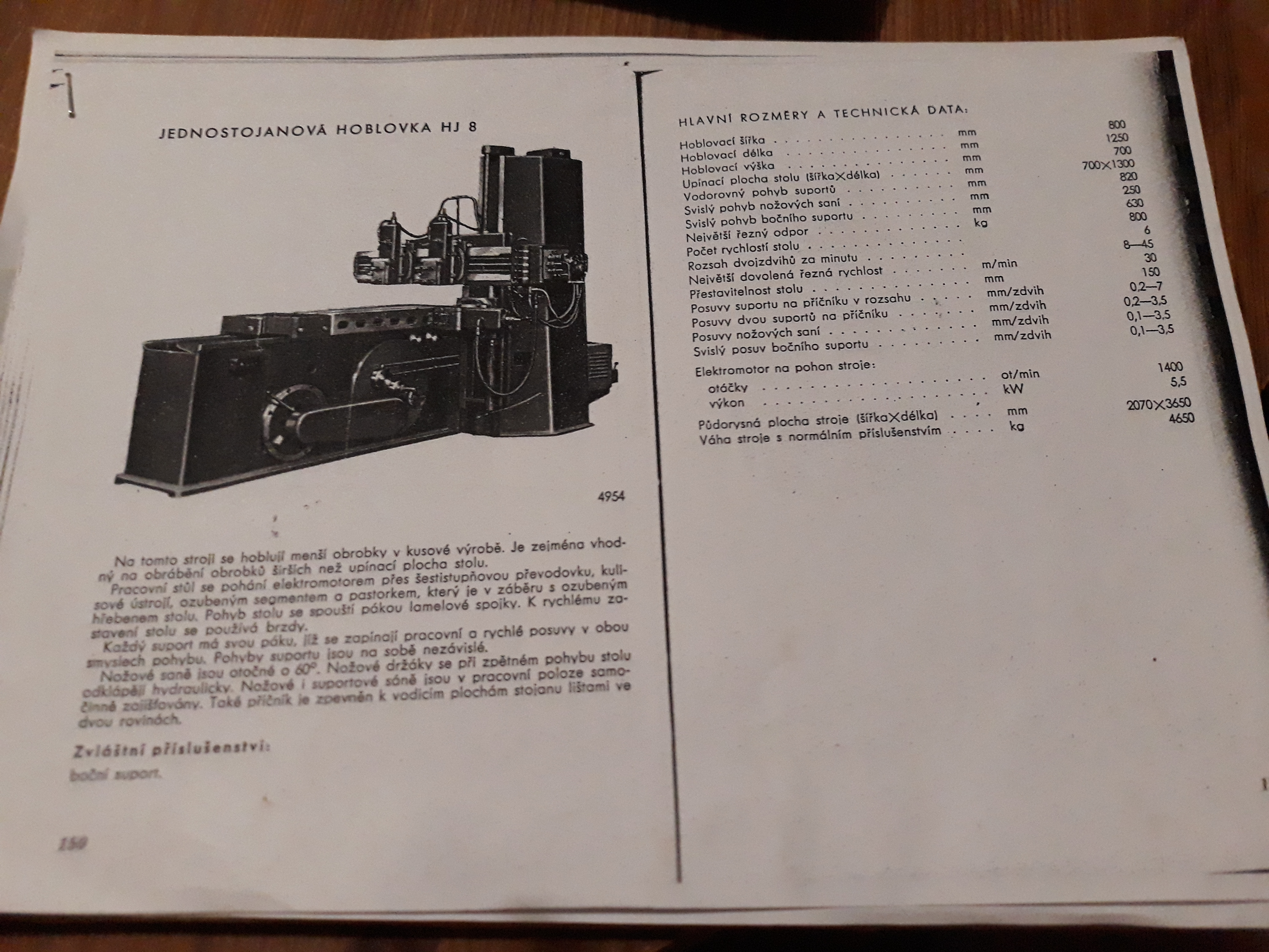 Na Jance /ZVVZ/ ten návod určitě byl (možná je). Co mi říkal známý, tak hledali hmotnost kvůli portálu. Protože nad tou hoblovkou byla slabší kočka /jeřáb/ - byla na pomocný obrobně (rozuměj mimo hlavní a vůbec jí nepoužívali) - mají tam ještě jednu se 6 m stolem. Tahle HJ8 měla kolem 7 tun - měla 2metrový stůl
