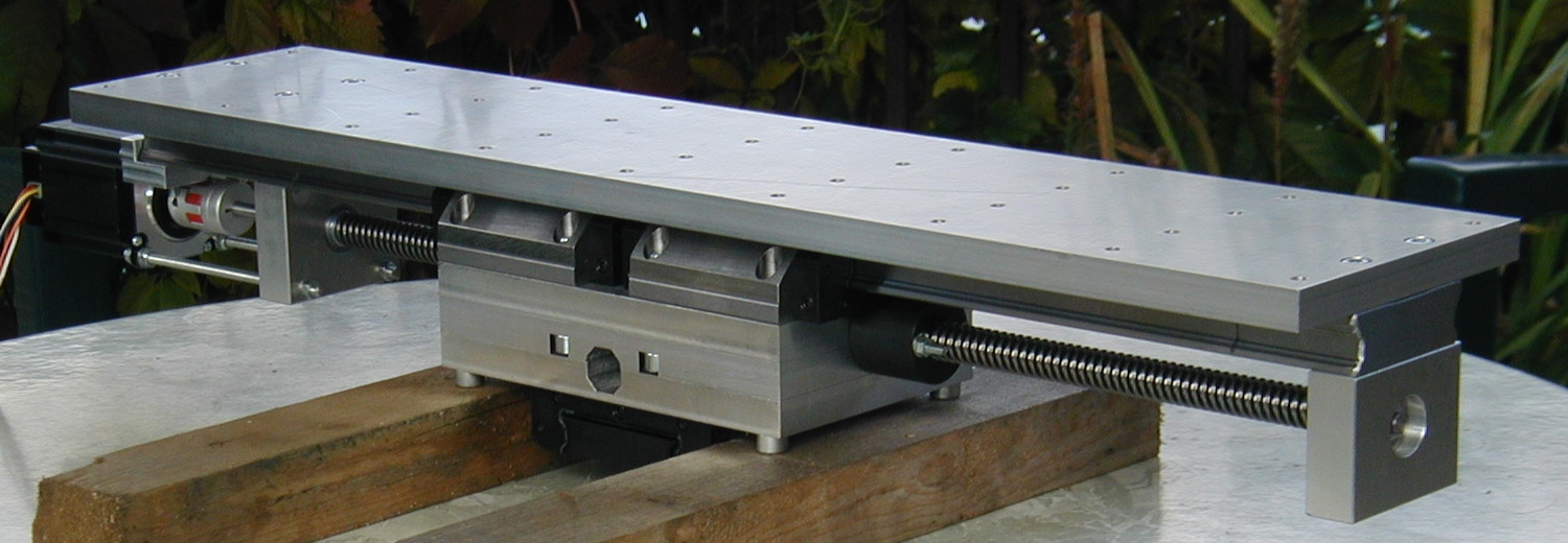 Po X letech provozu je vule v X-ove matici cca 0.2mm. Koupil jsem novou matici, rozrizl na dve polovicni a prisrouboval viz. foto. Puvodni matice 1 a nova 2. Maticemi na svorniku jsem nastavil "predpeti" tak, aby to motor spolehlive utahl v cele delce sroub ( sroub asi neni vybehan ). Stovkovymi hodinkami namerena nulova "mrtvola". Tuhost X-ove osy cca 0.1mm, zatlaceno v ose na jednu resp. druhou stranu a pri uvolneni se vrati zpet na nulu. S upravou jsem zatim spokojen, kdyz uz neni na kulickovy sroub