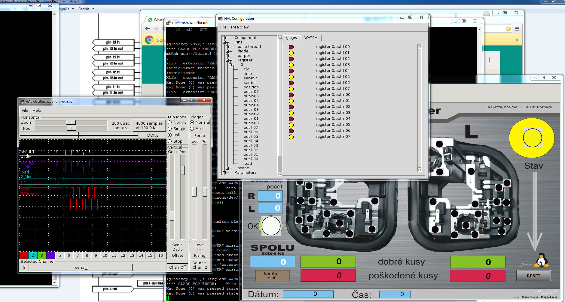 Linuxcnc (respektive machinekit) jsem použil proto, že ho jakštakš ovládám a navíc má možnost to celé pěkně nastavit a ladit. tim myslim třeba halscope a showconfig kde vidim co dělá v realném čase.