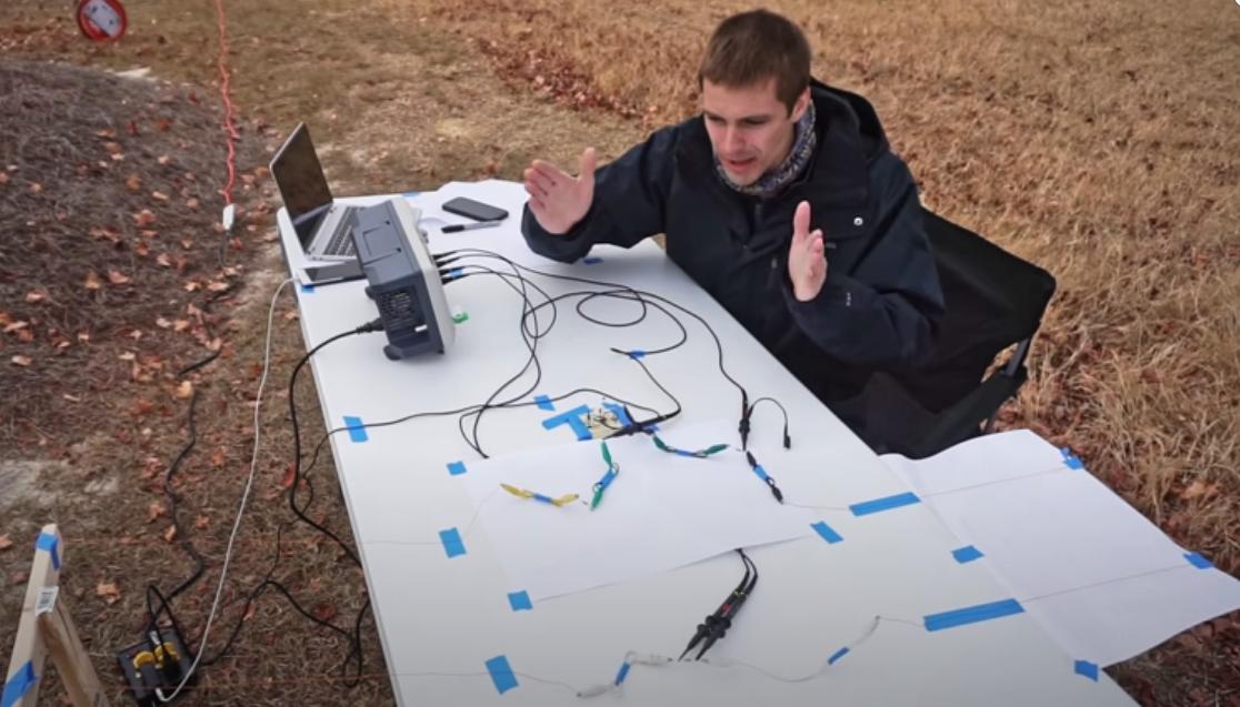 Pri zvážení podprahovej podstaty šírenia energie temnou hmotou vesmíru, by po zopnutí spínača došlo k miernému zakriveniu časopriestoru v okolí drôtu, čím by sa vykompenzovali prúdové línie toku tachyonovej energie narušenej prítomnosťou zeme. Táto zmena by vytvorila vlnu Ferdingerovho charakteru, ktorá by sa indukovala v drôte a práve na vzdialenosť 1m. Zo znalosti Durmanovej teórie zachytávania tachyónov v pevnej hmote by došlo k deštrukcii žiarovky ešte pred tým ako by dorazila energia z jednosmerného zdroja a tým sa obvod preruší. Dosť dobrá teória, na to že som to dal na jeden nádych ... :)