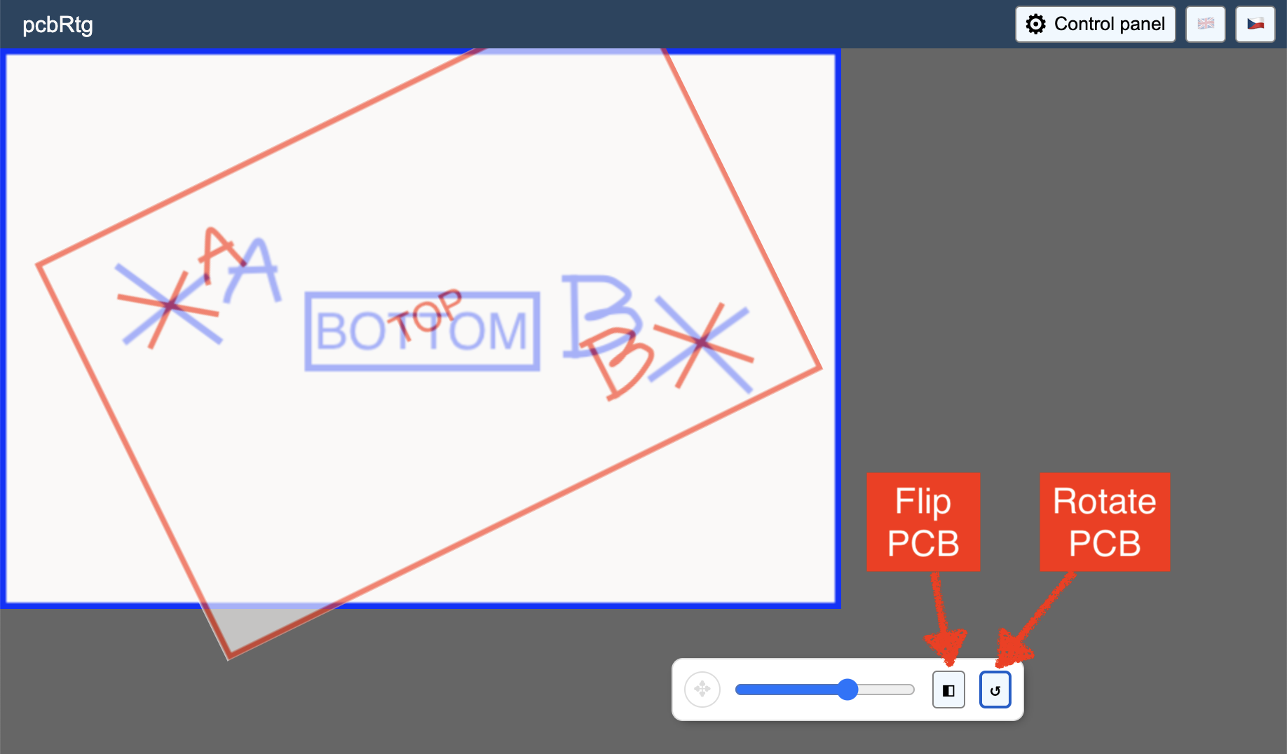 Pro jednodušší věci to vůbec špatné není. Zkusil jsem si to na pár neosazených PCB. Co by podle mne pomohlo, je možnost "usazení" pomocí tří bodů, které by se zadaly v rozhraní tvého softíku. To by nebylo softwarově náročné a ušetřilo by to ruční ořezávání fotek. Jinak dobrý nápad a dobrá pomoc. Chválím.